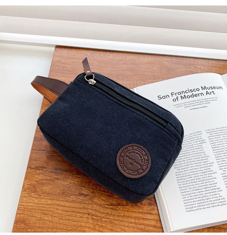 - Недорогая трехслойная холщовая сумка-клатч синего цвета.