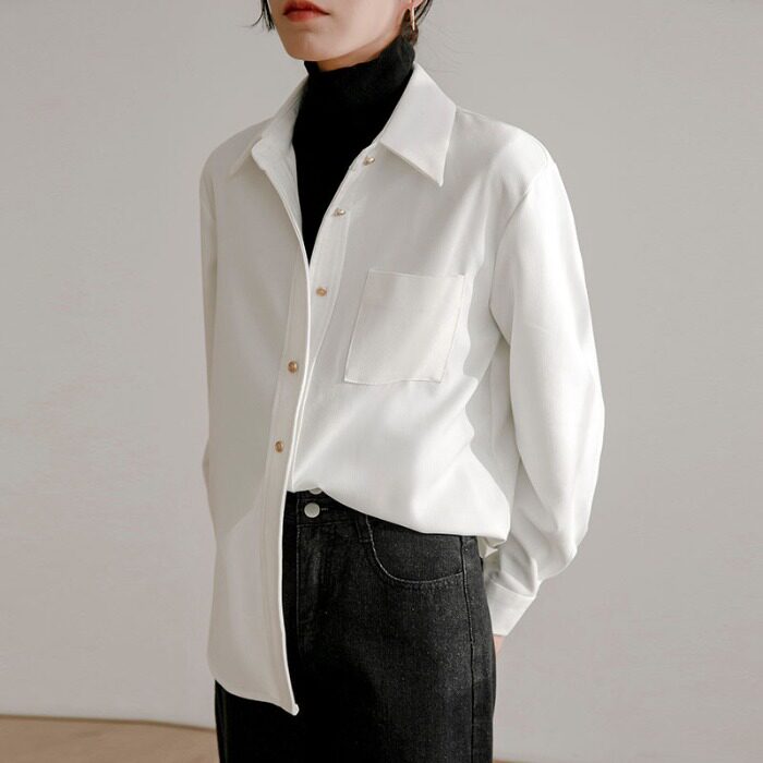 Весенний белый лонгслив, вельветовая рубашка, тренд сезона, в корейском стиле, оверсайз