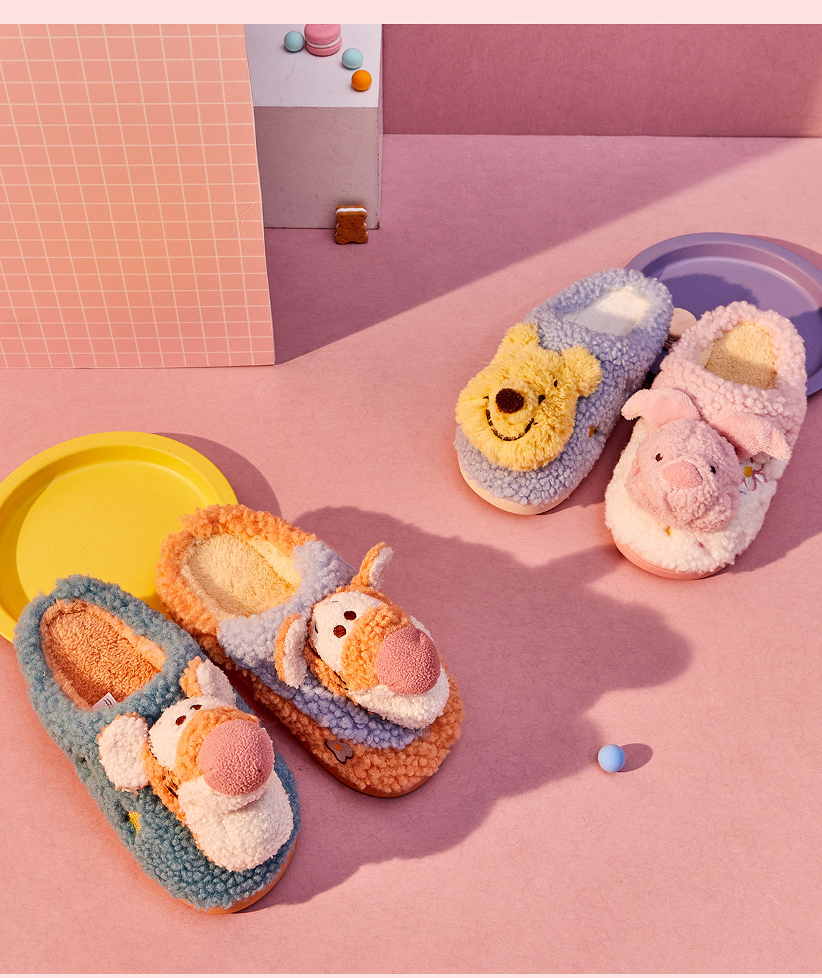Фруктовая раковина Disney IP -соединения пары пары женская зимняя комната теплый бархатный торт может носить хлопковые тапочки y