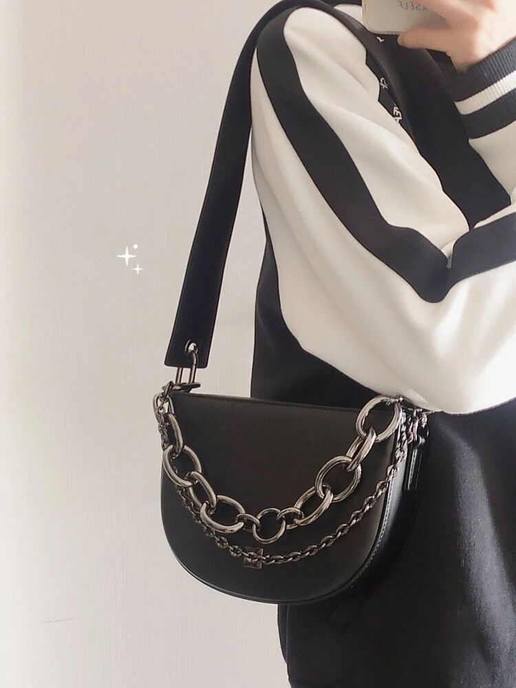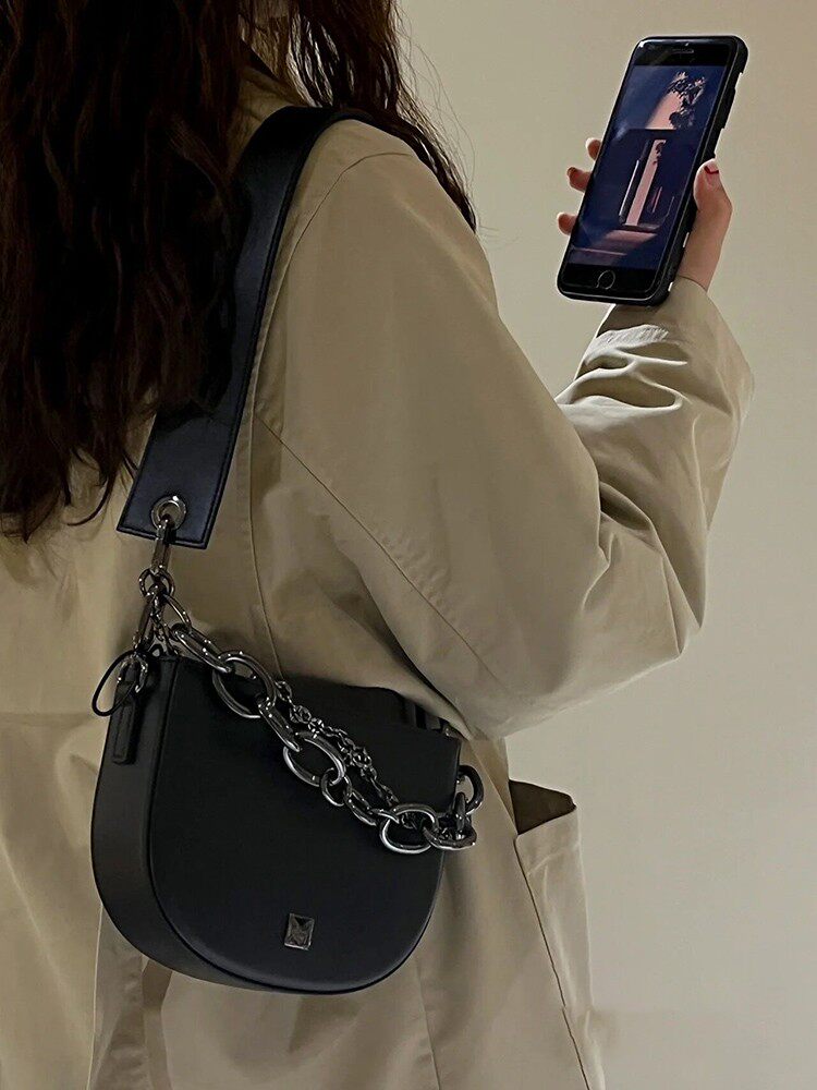 Сумка через плечо, модная черная цепь, коллекция 2022, изысканный стиль