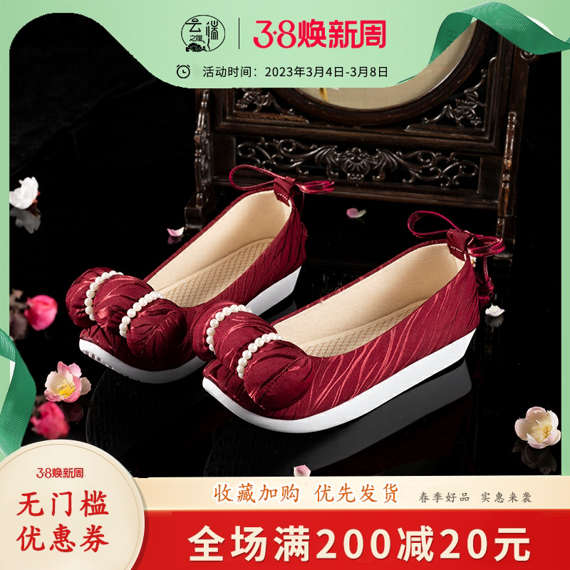 Обувь Ханфу Денгёна Древняя ветряная обувь Оригинальная облачная туфли густое дно династий с тангом и песен с юбками с лошадью