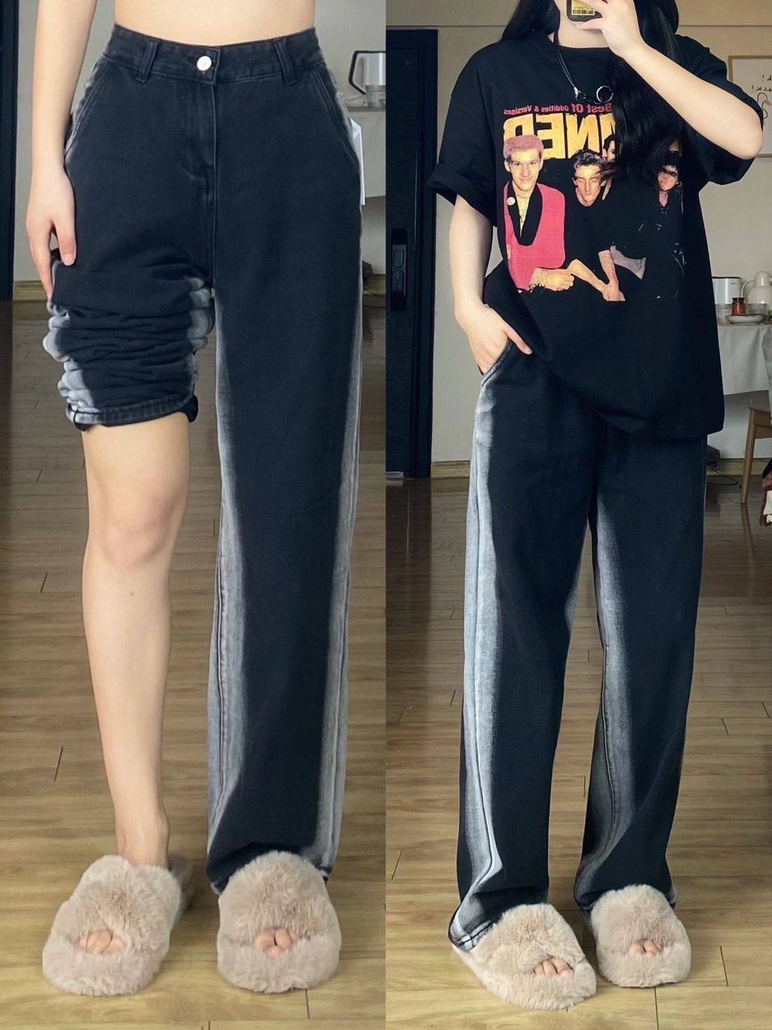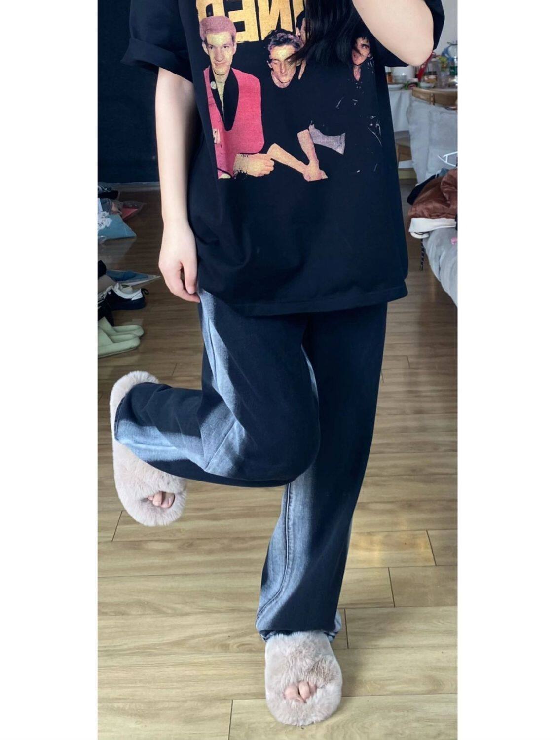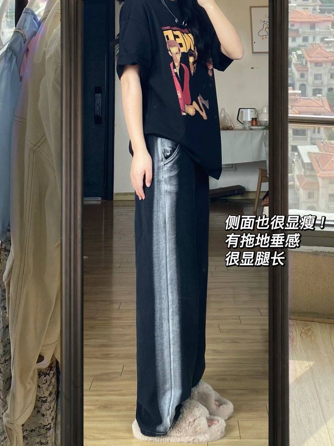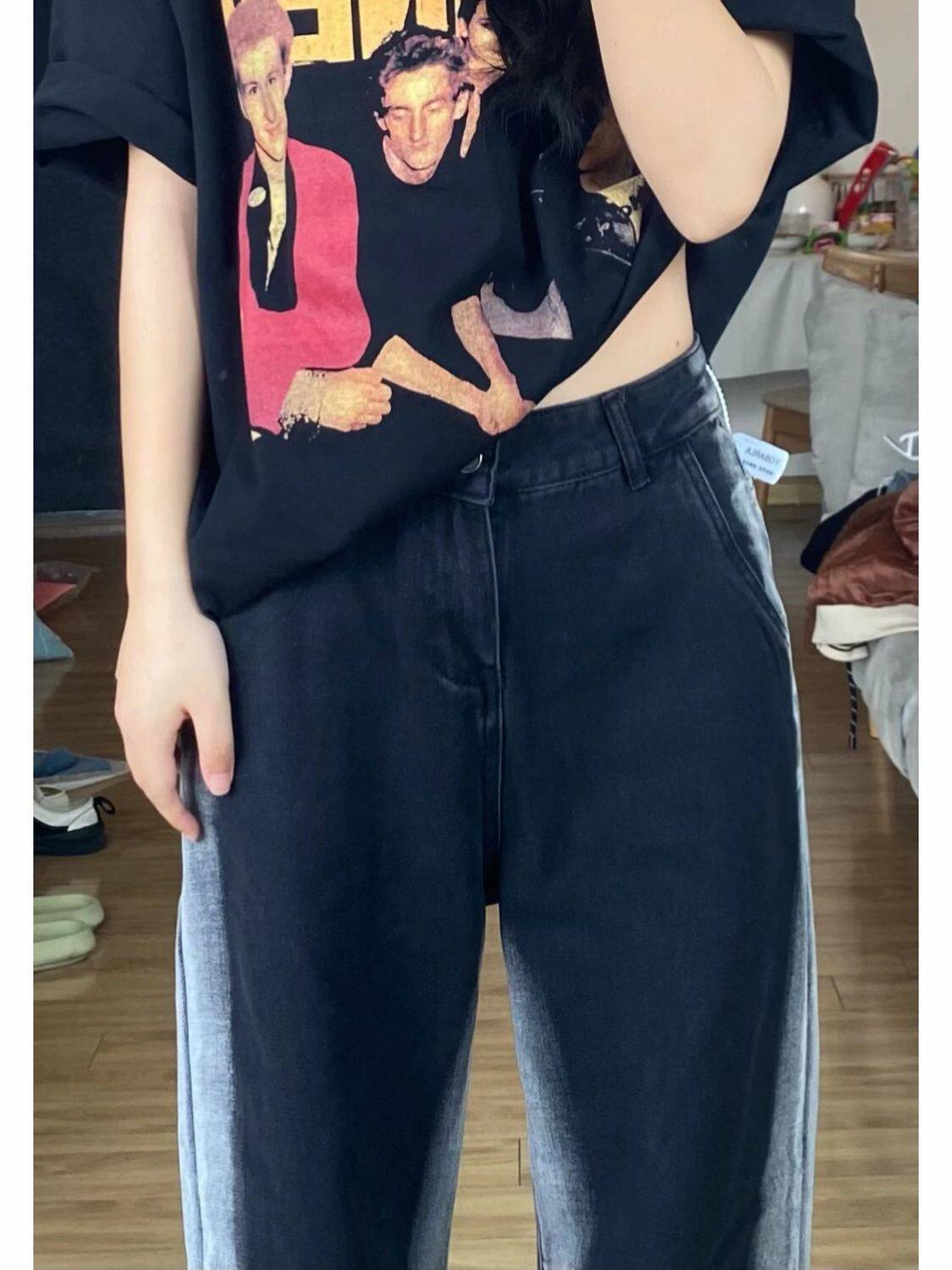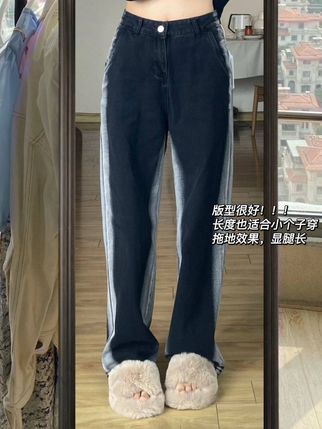 Джинсы, штаны, высокая талия, свободный прямой крой, большой размер, подходит для полных девушек, для формы тела «груша»