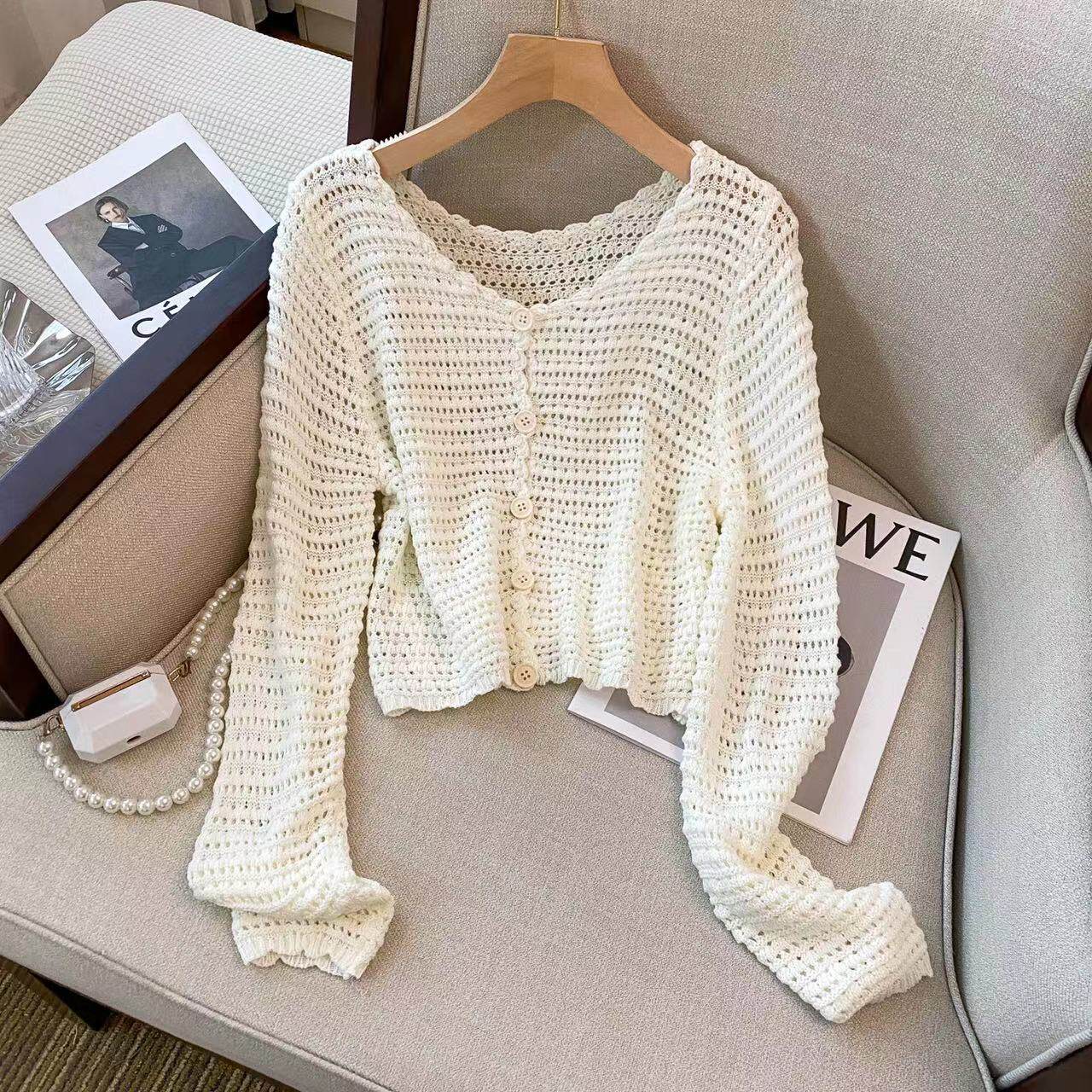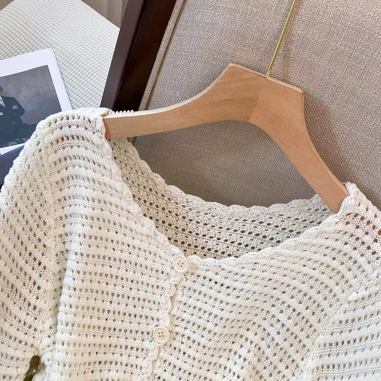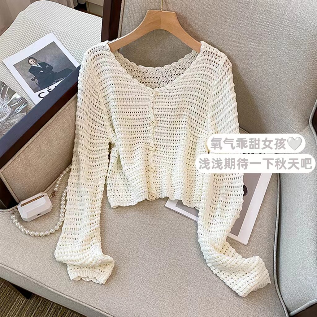 Французский ленивый стиль Полая вязаная солнцезащитная рубашка для женщин весной 2023 г. Новый дизайн и свободный верхний модный