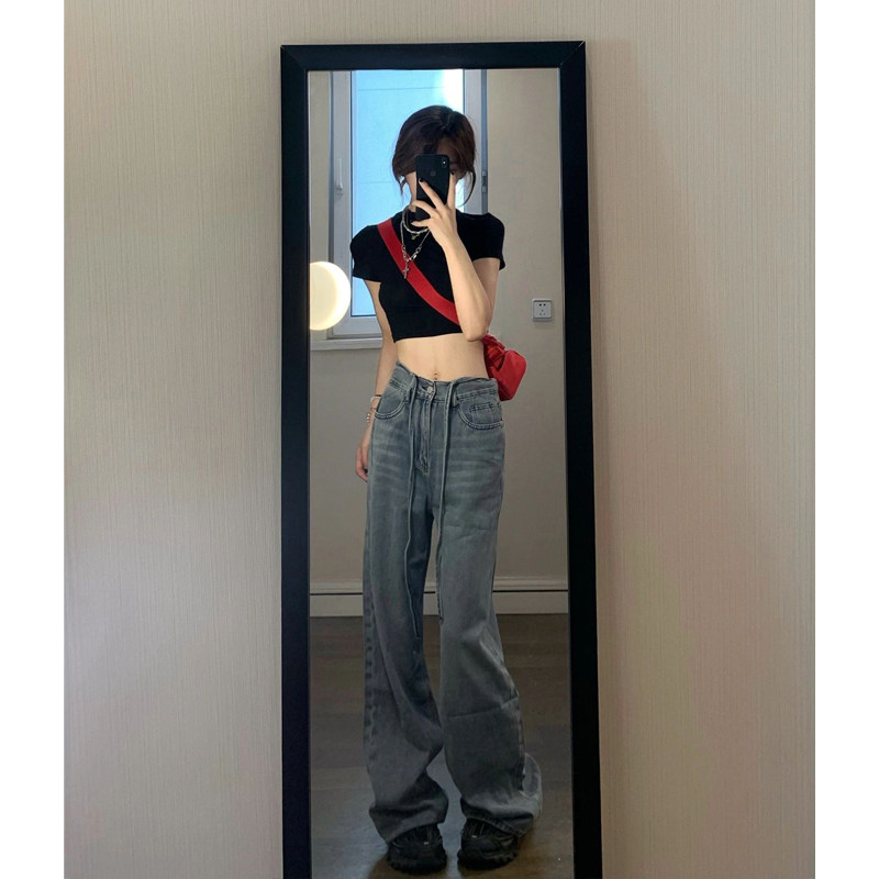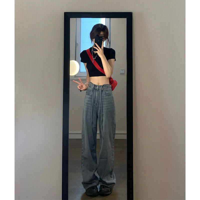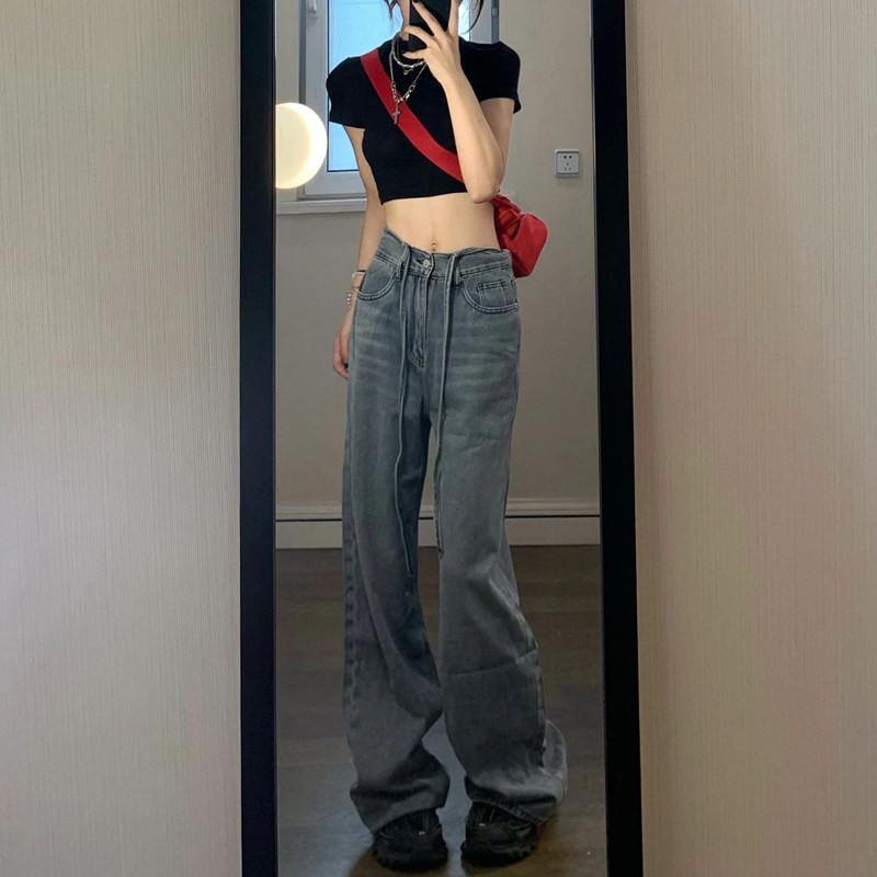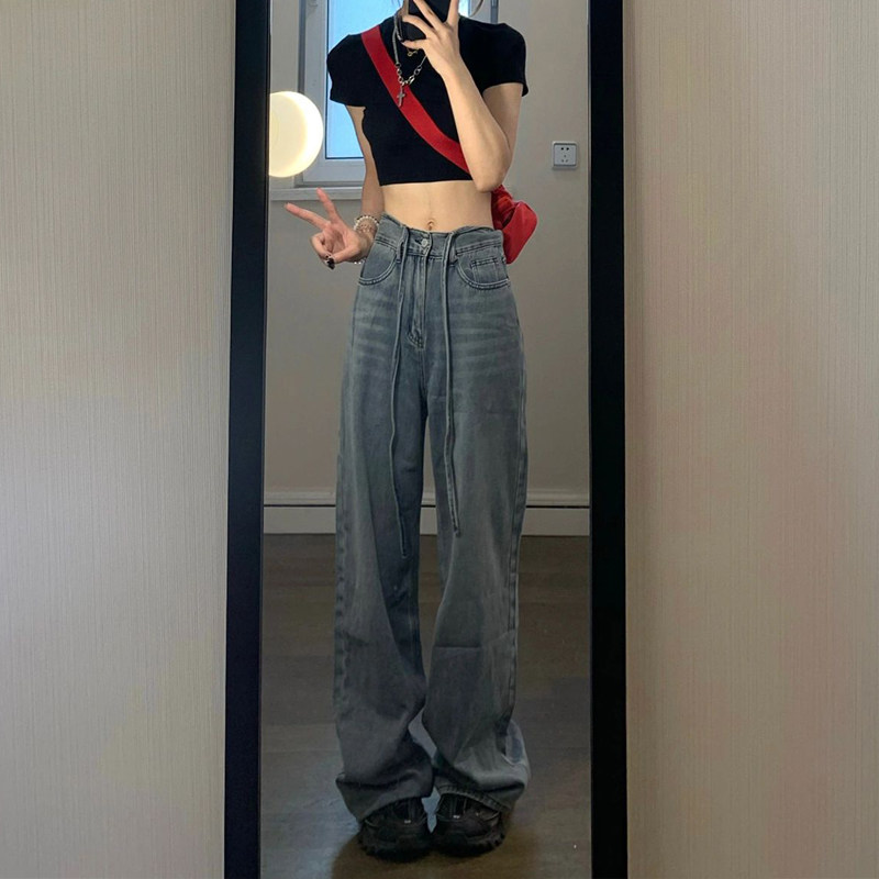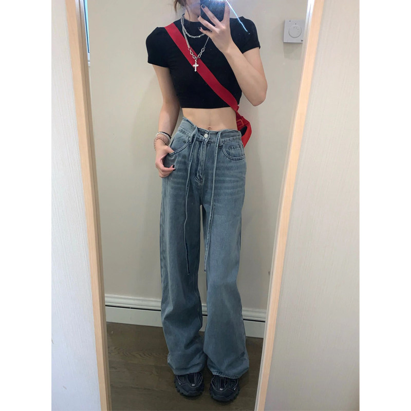 Tide, ретро прямые свободные джинсы, осенние дизайнерские штаны, свободный прямой крой, высокая талия, тренд сезона, большой размер