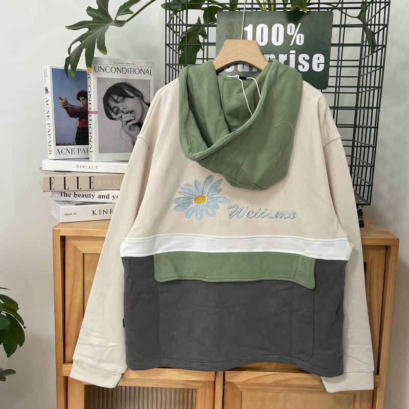 WEIIS@MO Хлопковое стекло контрастное вышивное пальто.