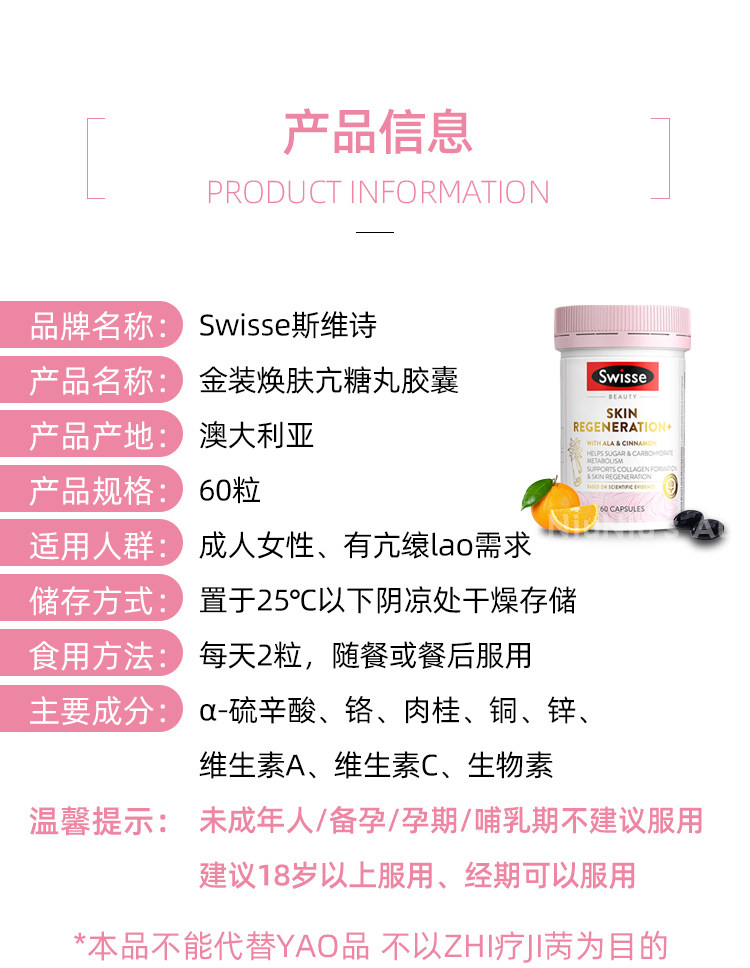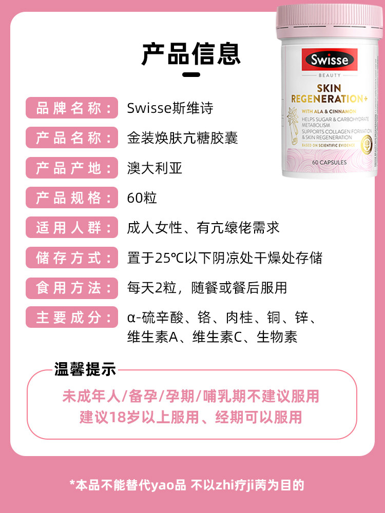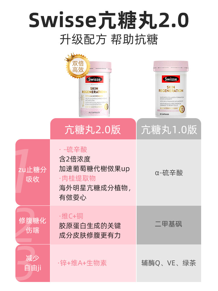 Австралийские таблетки Swisse Swisse Gold против сахара, версия 2.0, омоложение, омоложение, липоевая кислота, двойные антитела 3.0