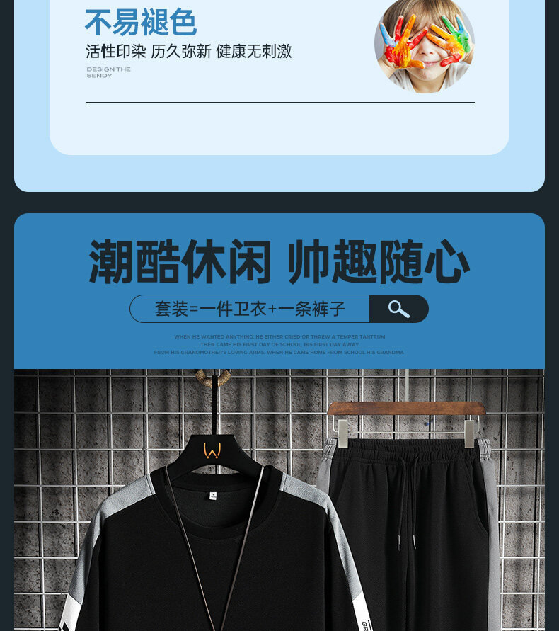 Мужской осенний демисезонный спортивный костюм, универсальная трендовая толстовка, свободный крой