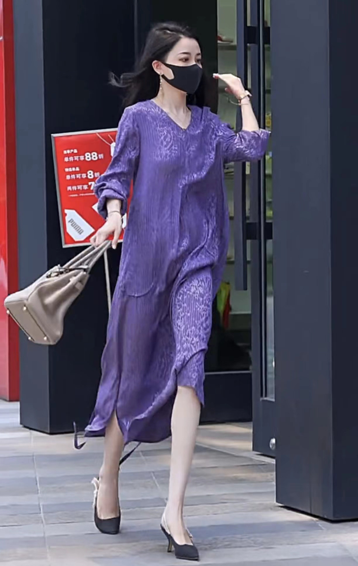 Осеннее шелковое модное платье, V-образный вырез, в западном стиле