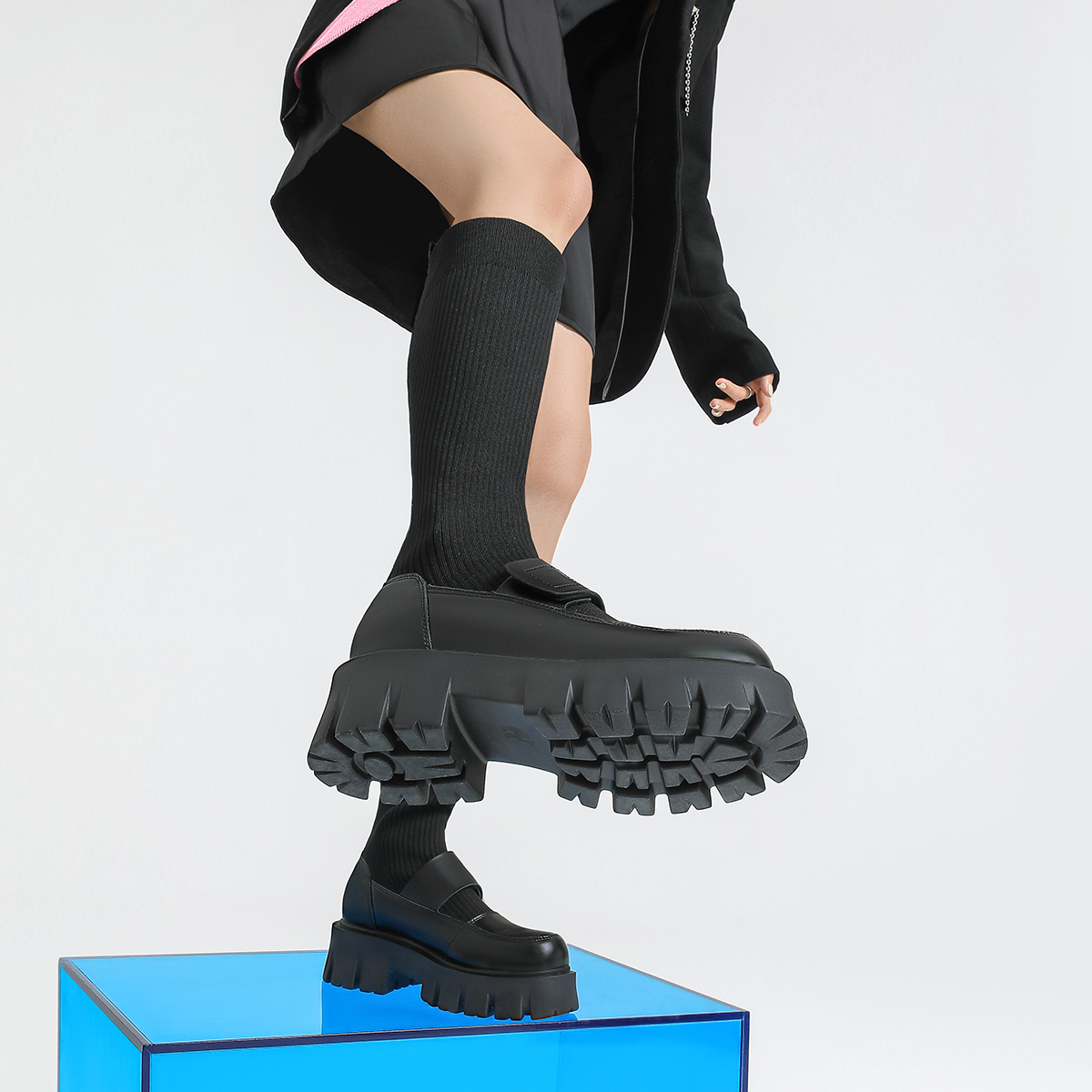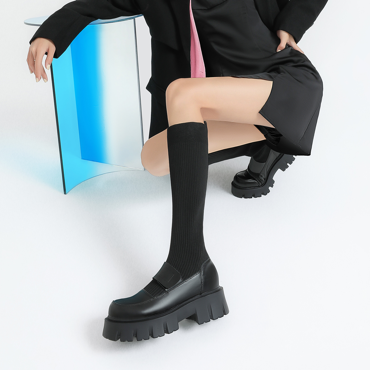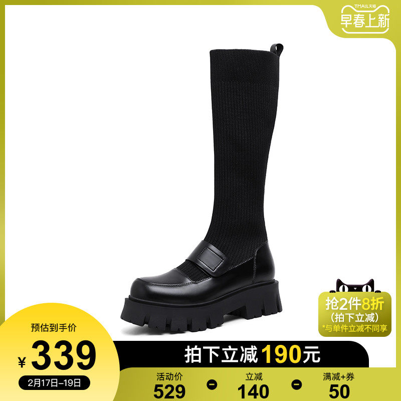 Зимняя обувь, лоферы на платформе, бахилы, высокие сапоги, из натуральной кожи, средней длины