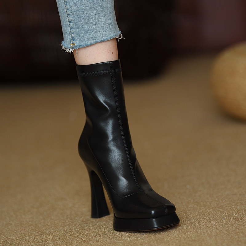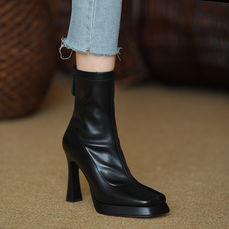 Эластичные короткие сапоги, демисезонные ботинки, туфли на высоком каблуке