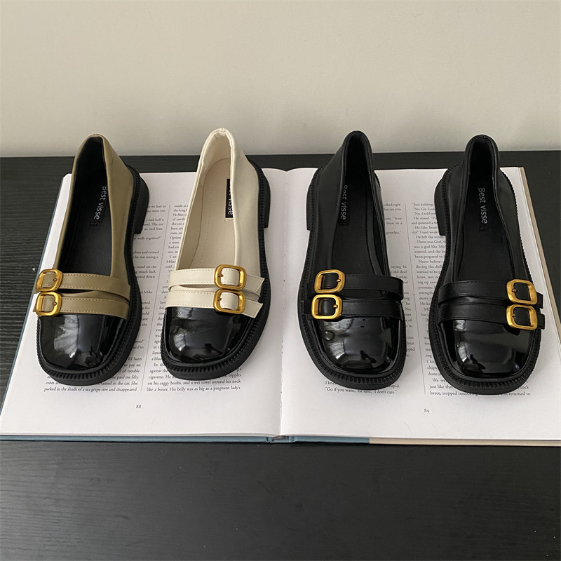 Ретро универсальная обувь с низким вырезом для отдыха, ремень для кожаной обуви, пряжка, лоферы