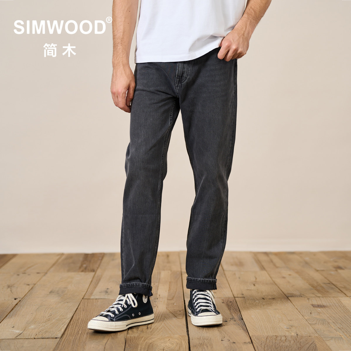 Simwood Jianmu Nanning [RS04 комбинированная прямая трубка] Осень Новая 13,2 унции Ретро Джинсы Мужчины