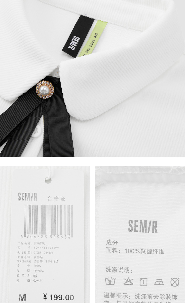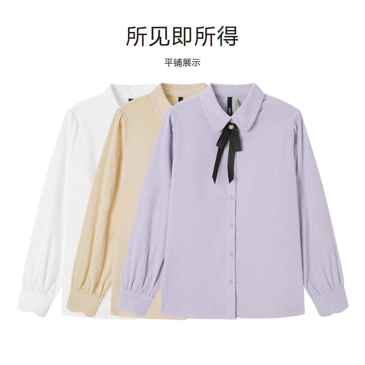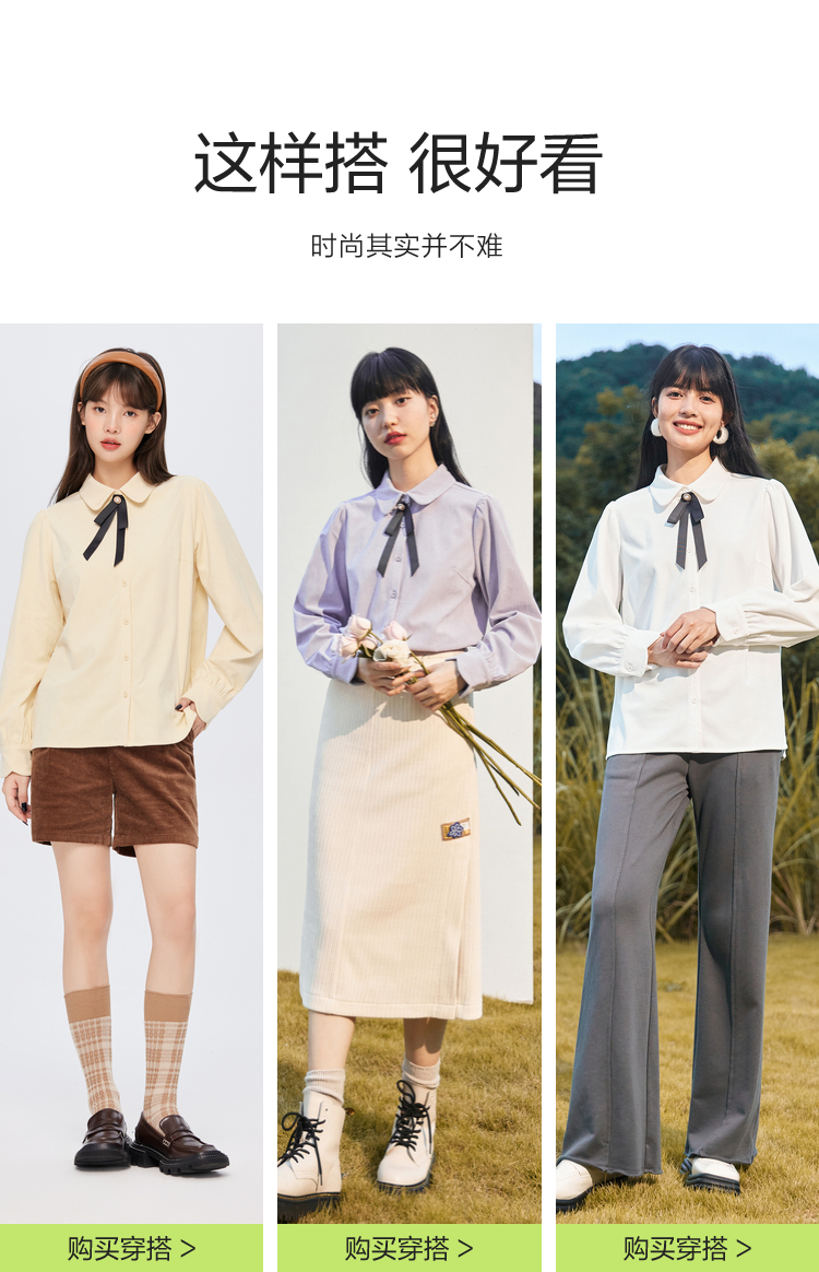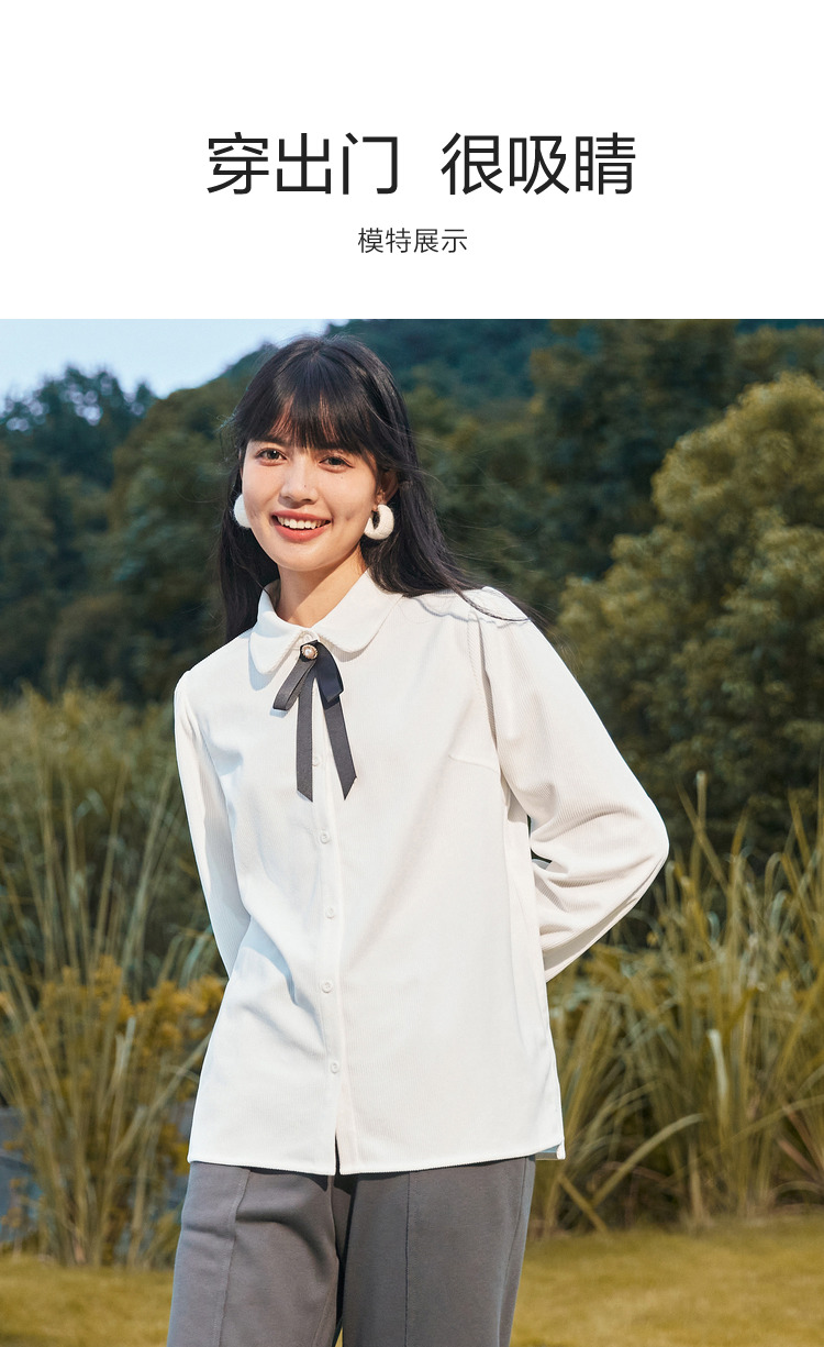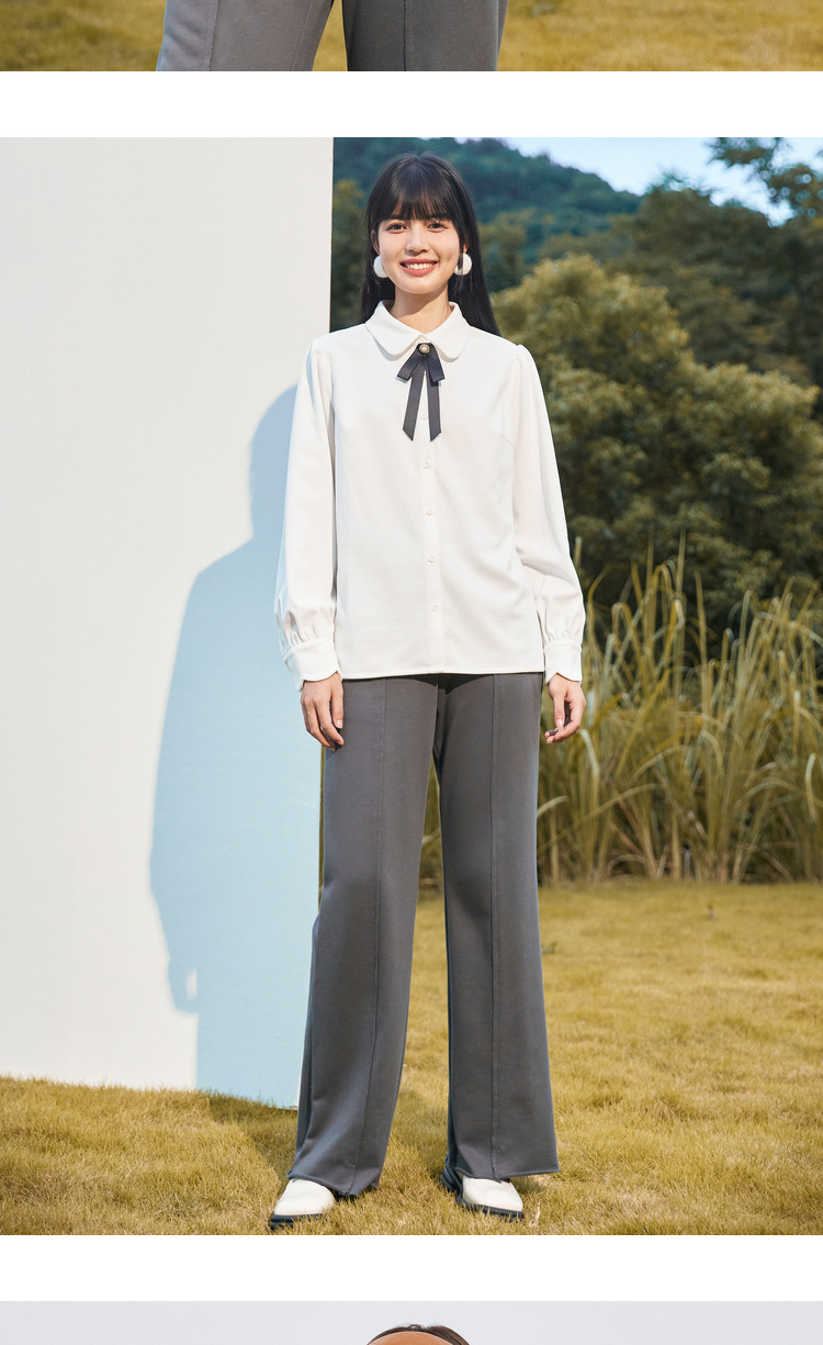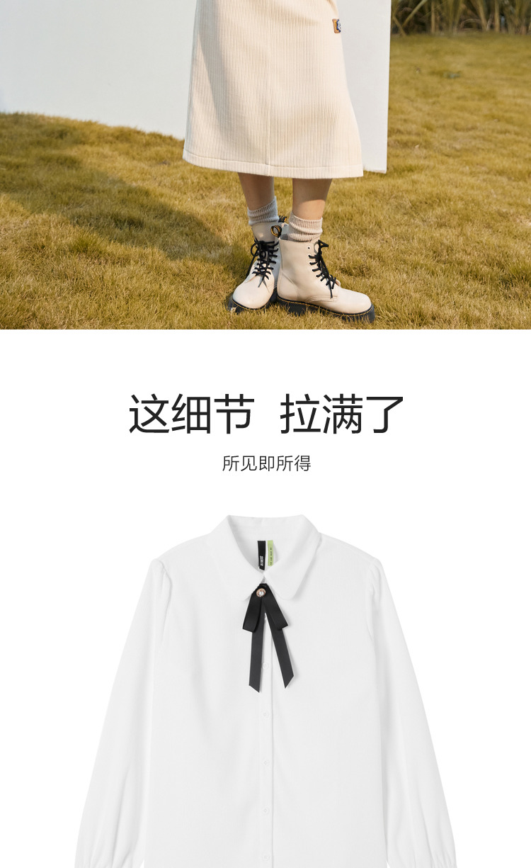 Semir, зимняя белая вельветовая сиреневая рубашка с бантиком, коллекция 2022, рукава фонарики, французский стиль