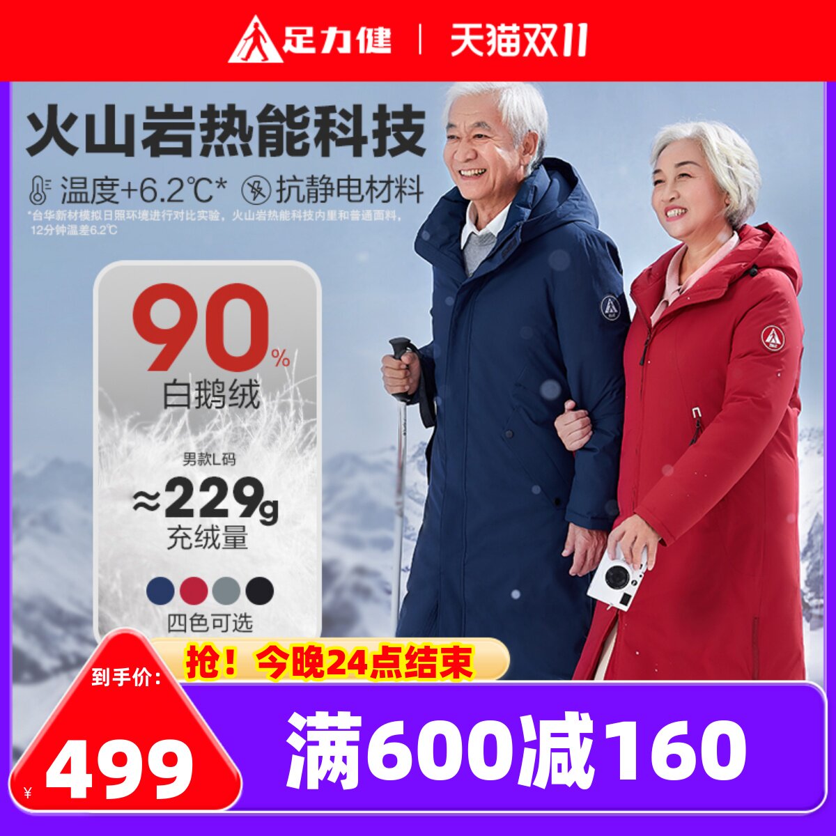 足力健 Длинный пуховик, зимняя куртка, толстовка с капюшоном с молнией, гусиный пух, увеличенная толщина