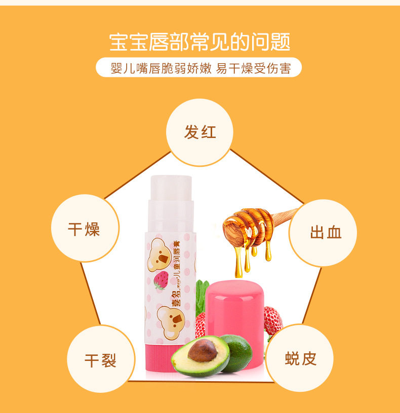 Детский бальзам для губ для младенца, увлажняющая клубника, 2G