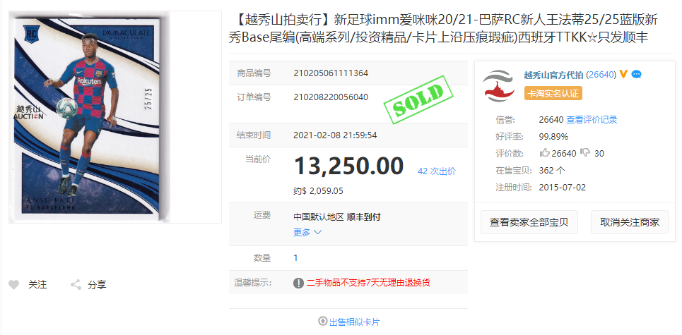 [Название полного участка] [Yuexiu Mountain Auction Fair] New Football Imm Love Mimi 20/21-Barcelona RC новичок Ван Фати 25/25 Blue Edition Basie Base Base (высококачественный сериал/инвестиционный бутик/карта на кабельном недостатке) Испания Ttkk ☆ Только отправьте SFF