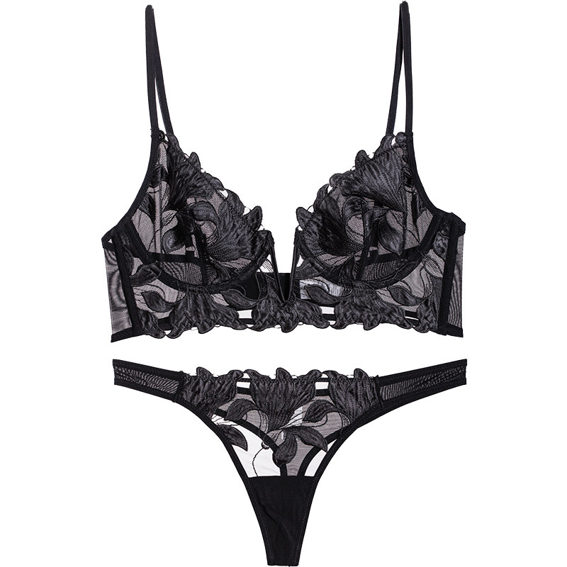 Летнее ультратонкее кружевное нижнее белье, поддерживающий сексуальный бюстгалтер, с вышивкой, по фигуре