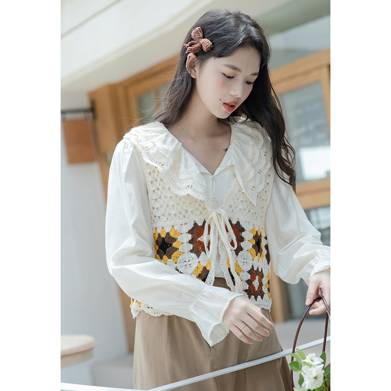 Жилет, японский бюстгальтер-топ, дизайнерская рубашка, комплект, с вышивкой, тренд сезона