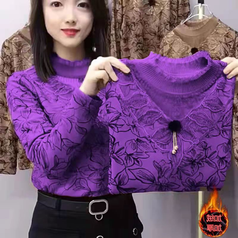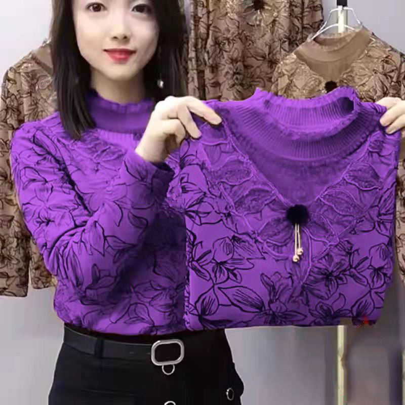 Утепленный базовый приятный телу демисезонный кружевной лонгслив