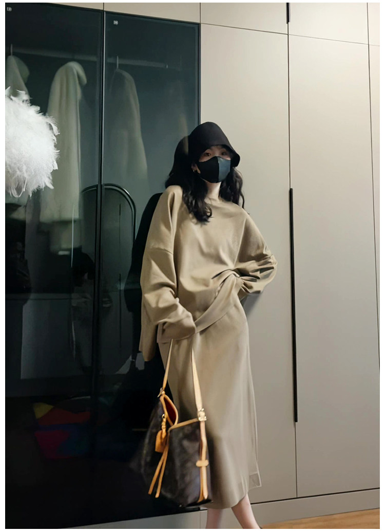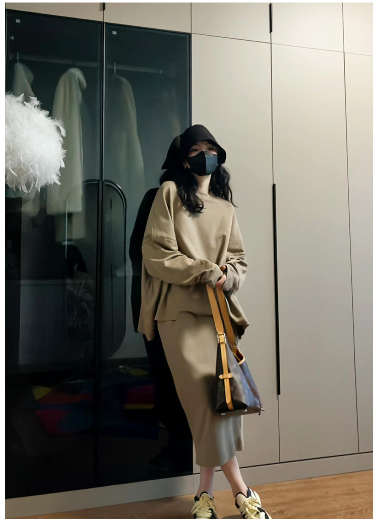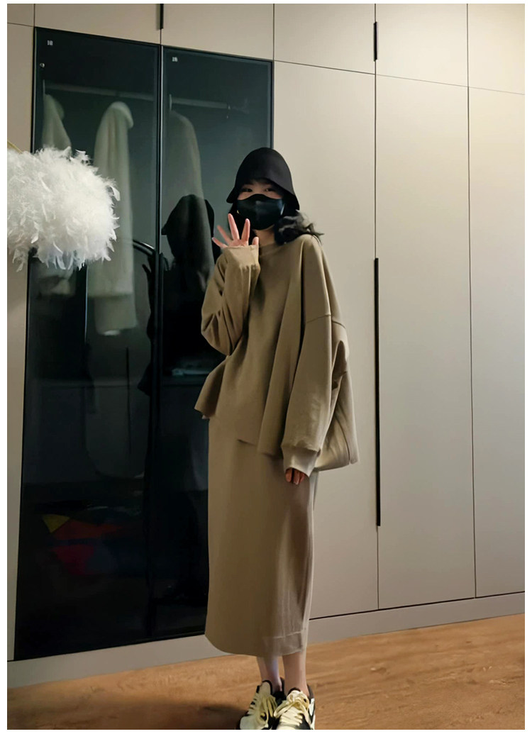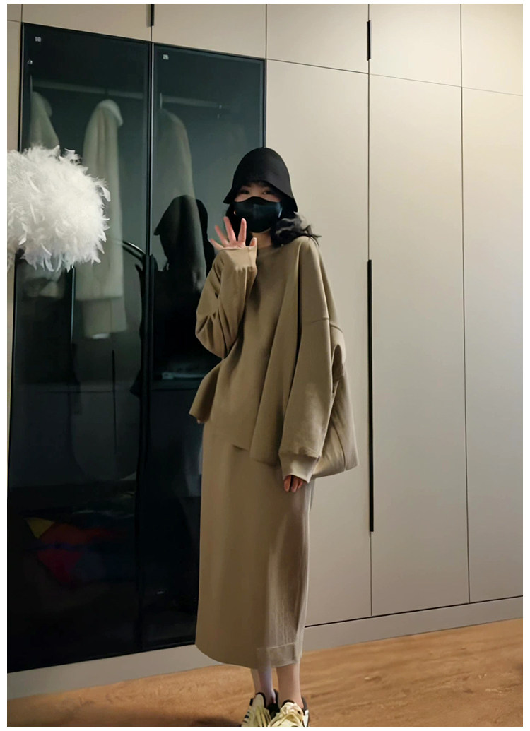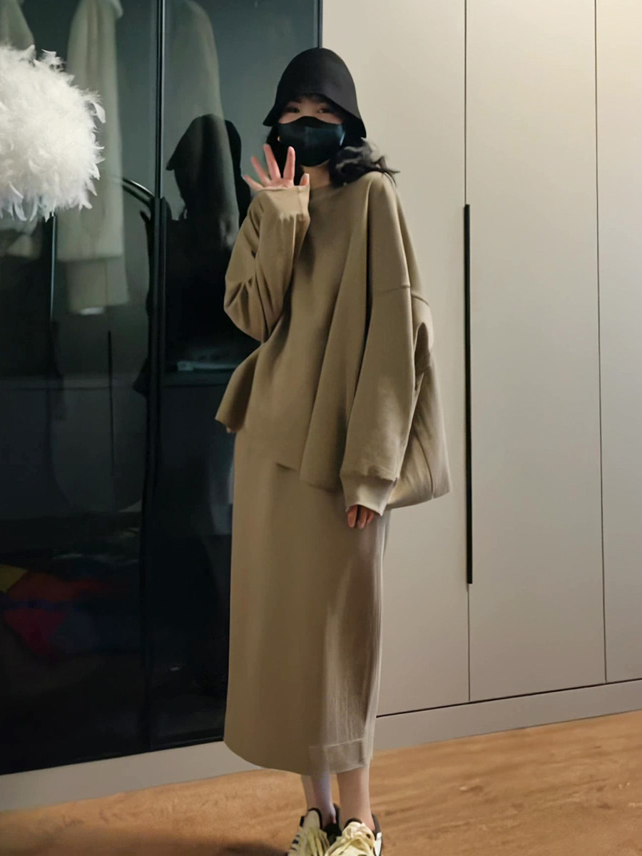 Демисезонный лонгслив с круглым воротником, юбка, комплект, в корейском стиле
