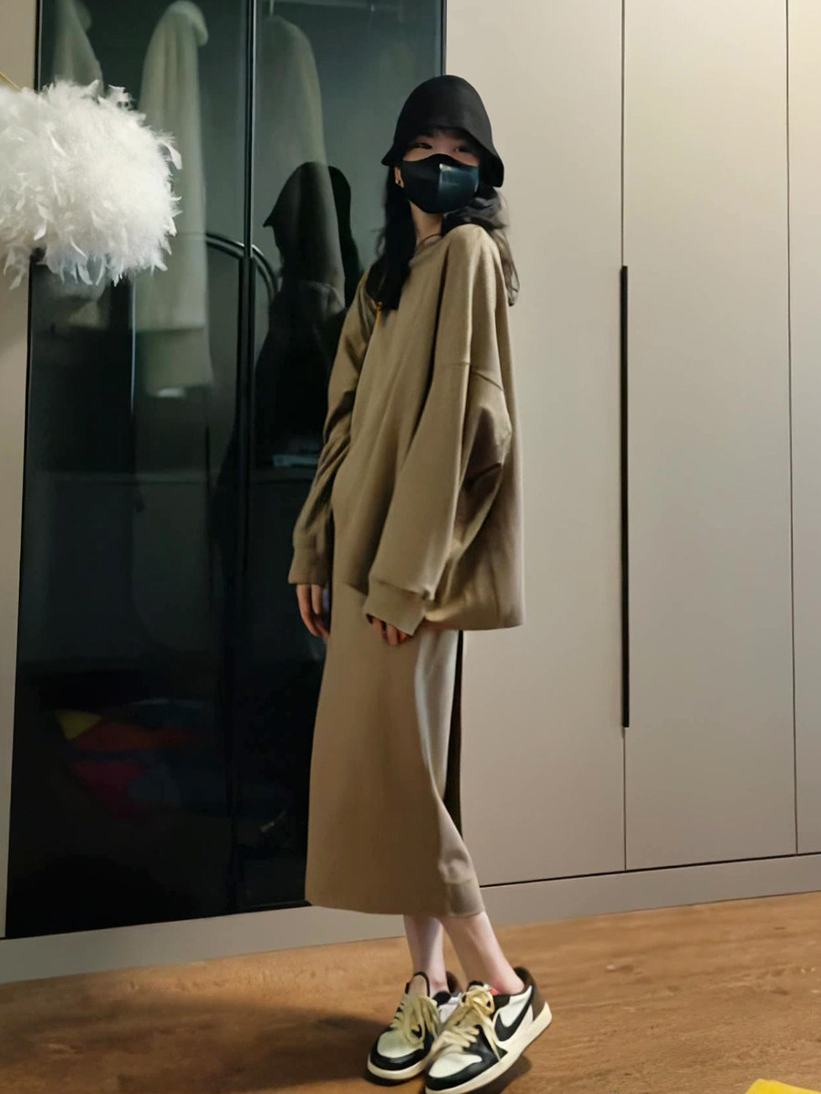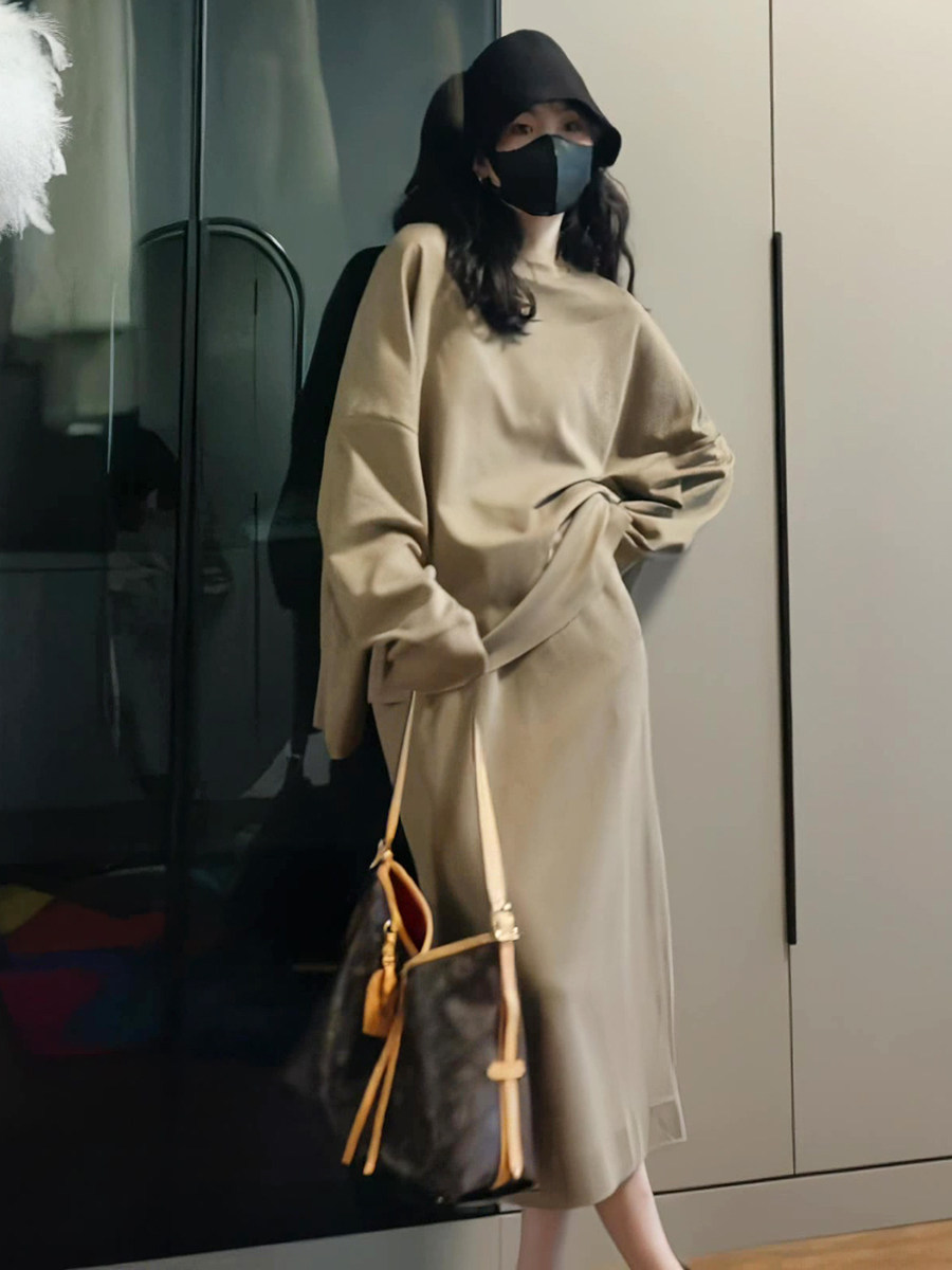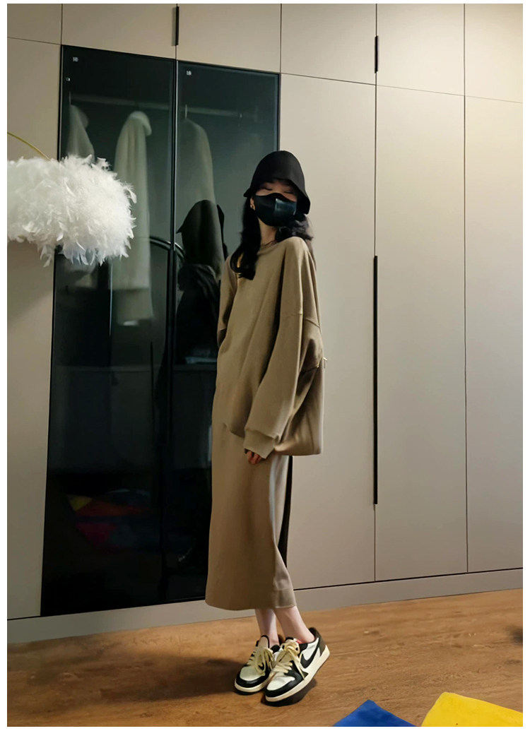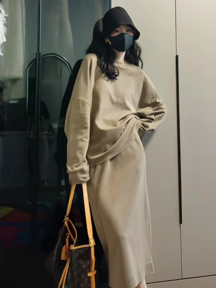 Демисезонный лонгслив с круглым воротником, юбка, комплект, в корейском стиле