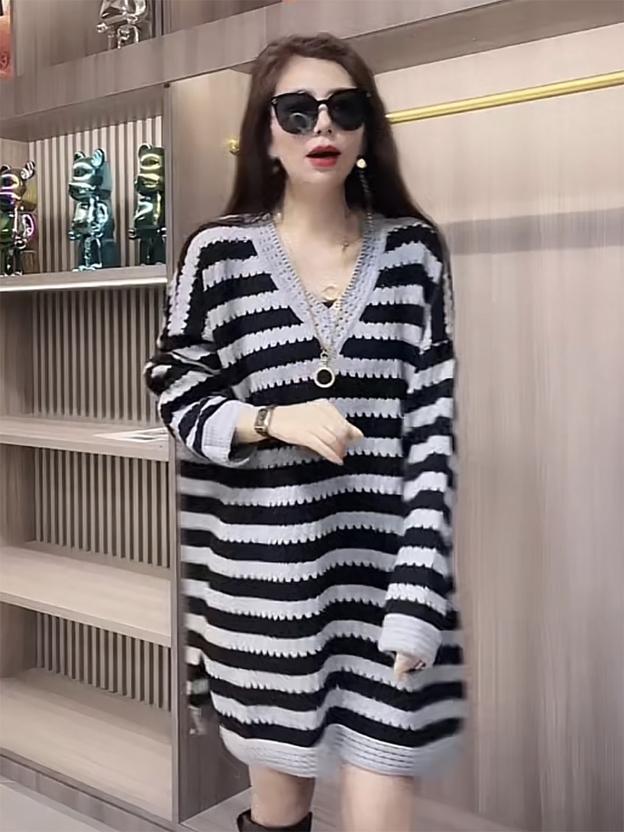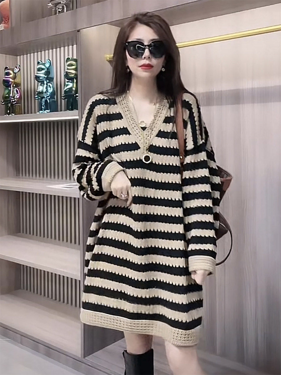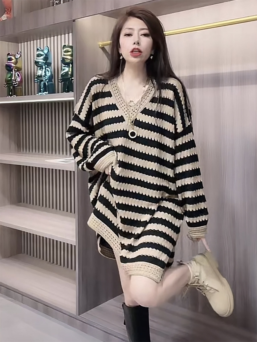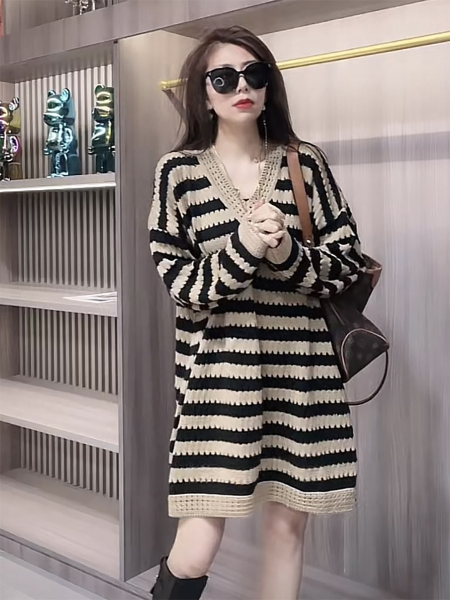 Осенний трикотажный модный базовый свитер, длинное платье, в корейском стиле, средней длины