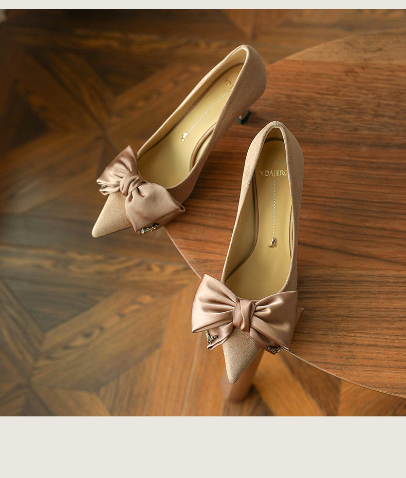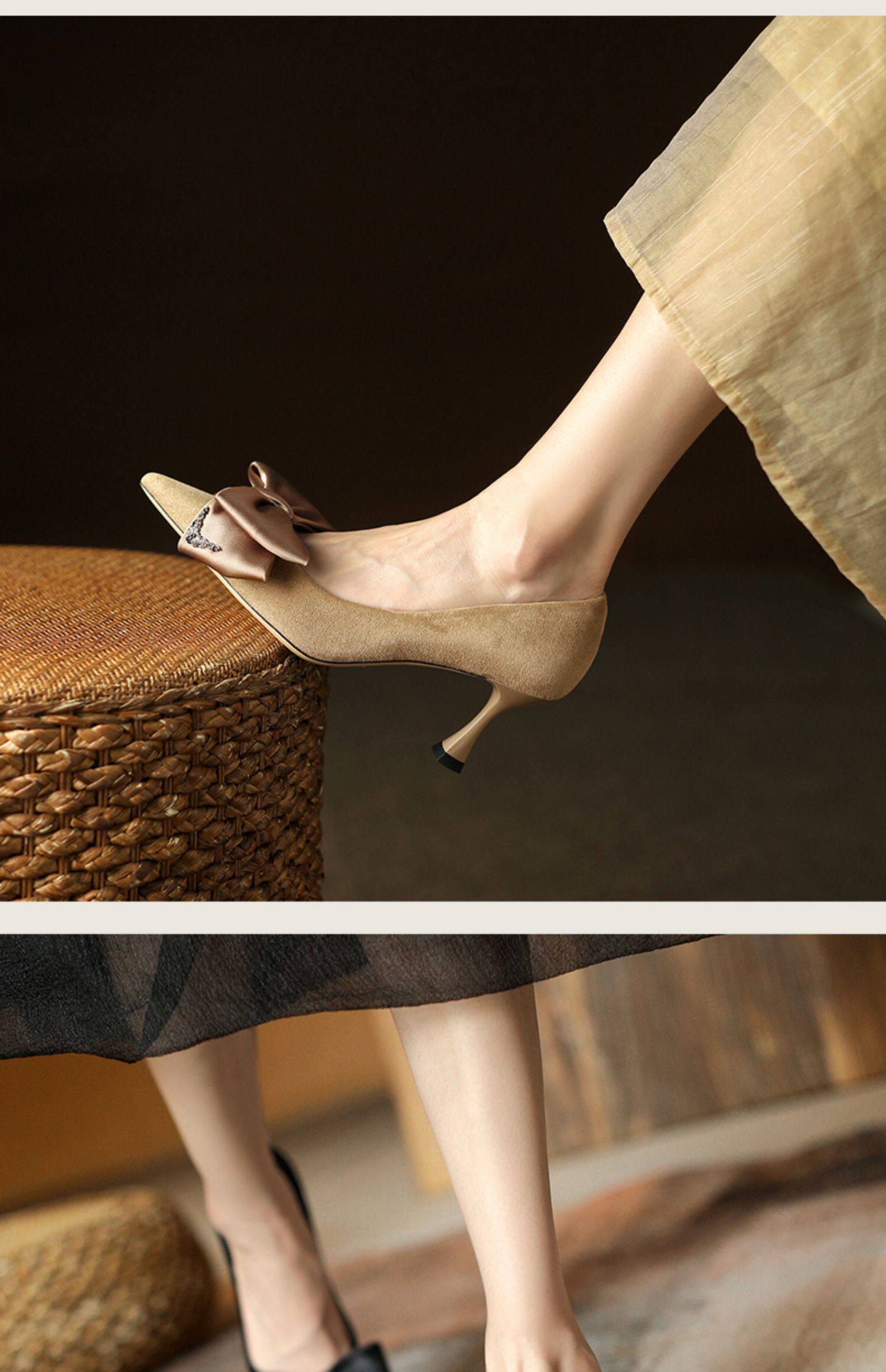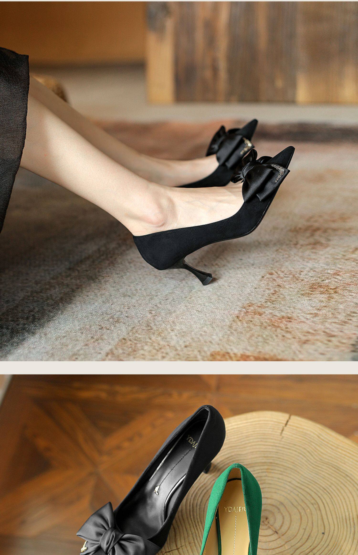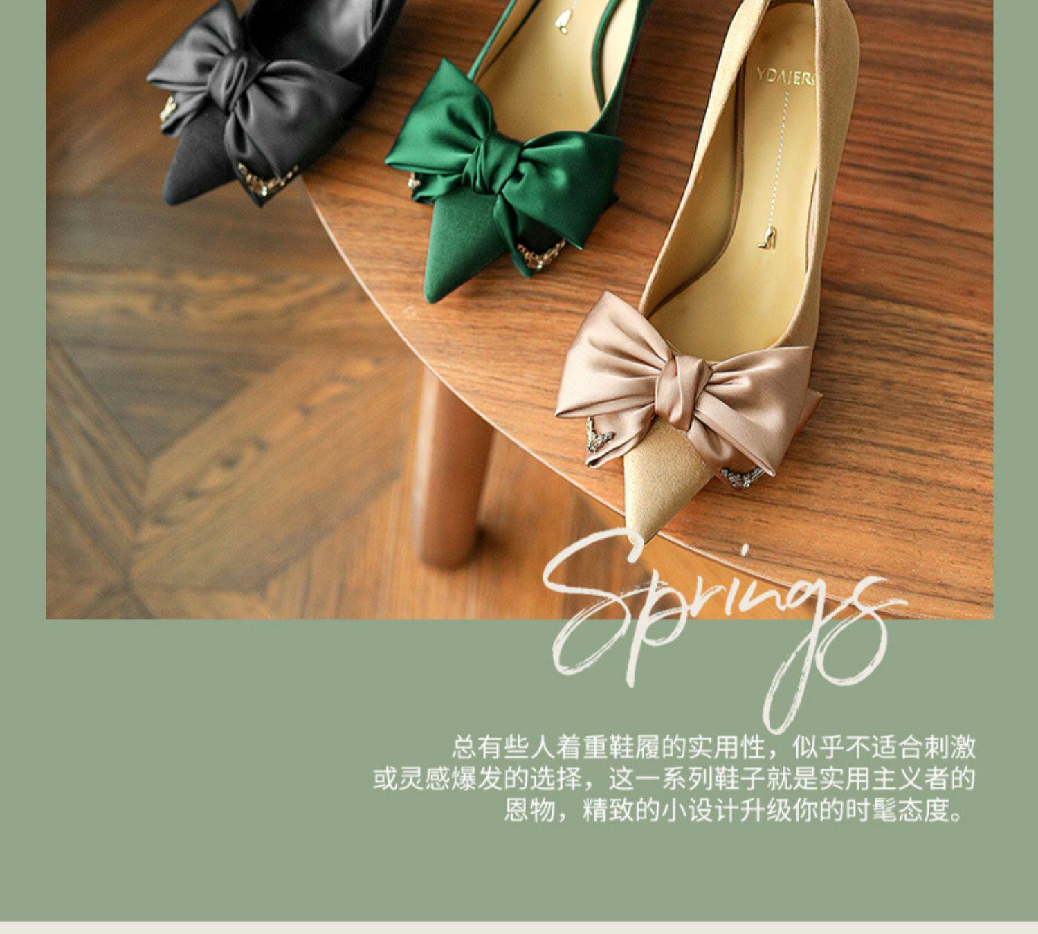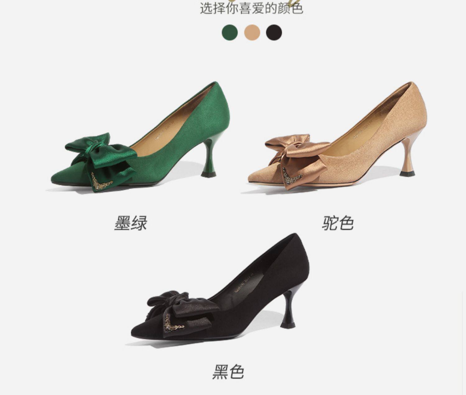 Зеленые туфли на высоком каблуке с бантиком, 2023, осенние, тренд сезона, из натуральной кожи, французский стиль