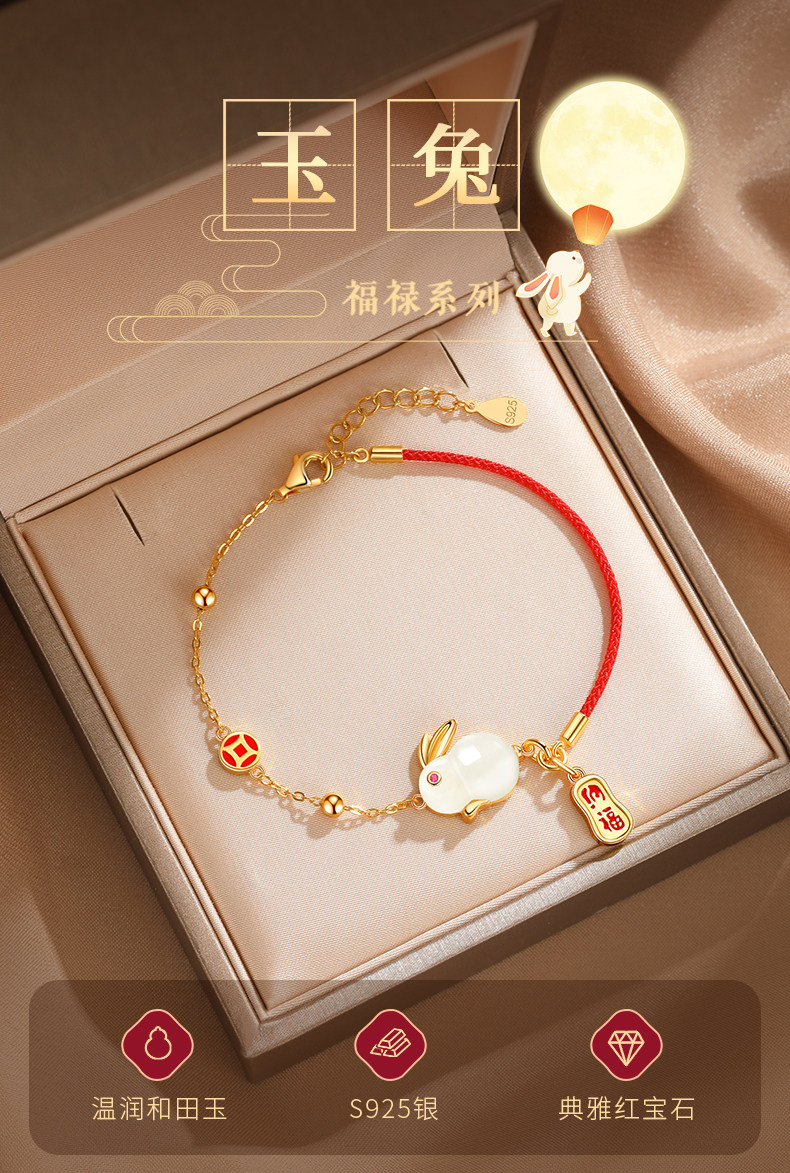 - [Аффилирован с подарочной коробкой Zhenai Rose] браслет нефритового кролика