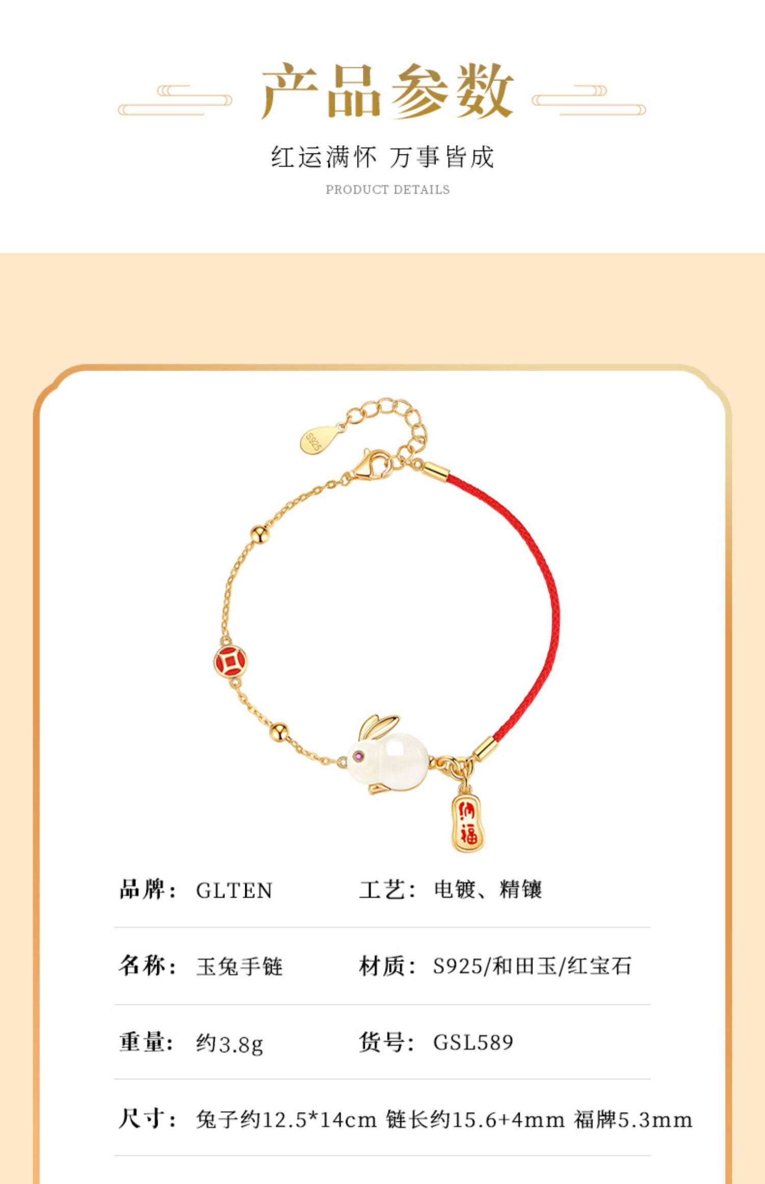 - 【Нефритовое ожерелье кролика+браслет】 Подарочная коробка приходит на National Tide
