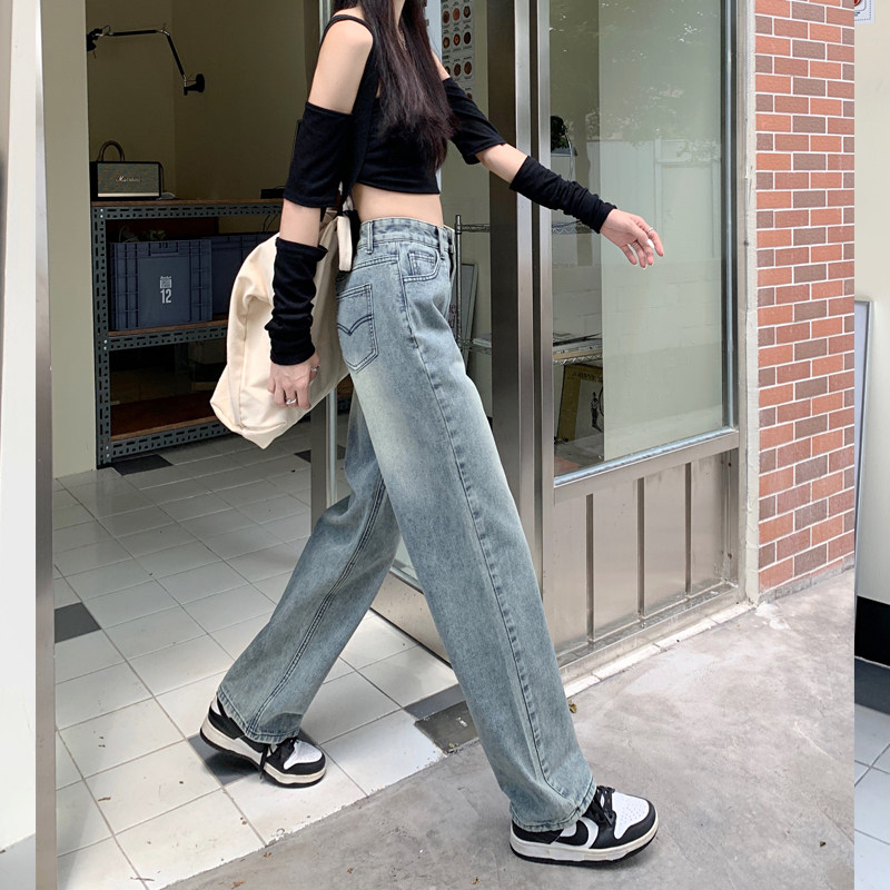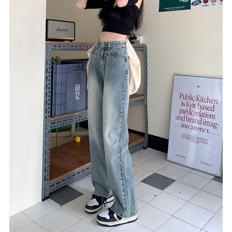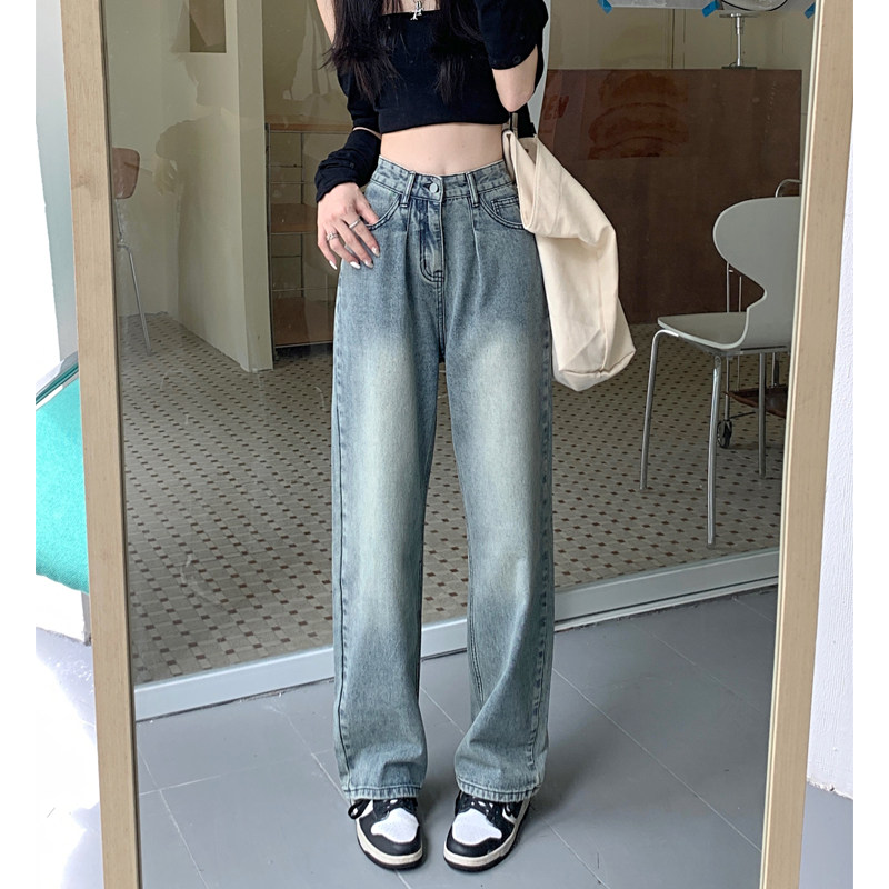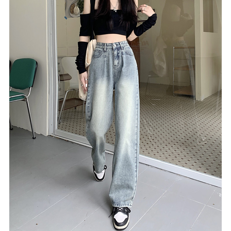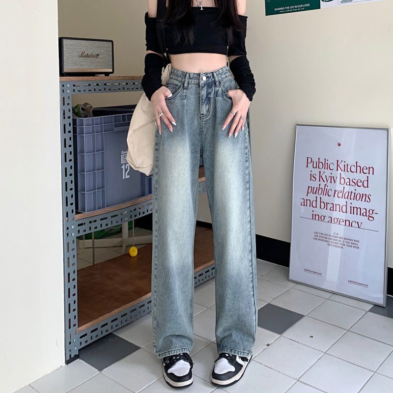 Ретро осенние джинсы, штаны, высокая талия, свободный прямой крой, 2024 года, большой размер