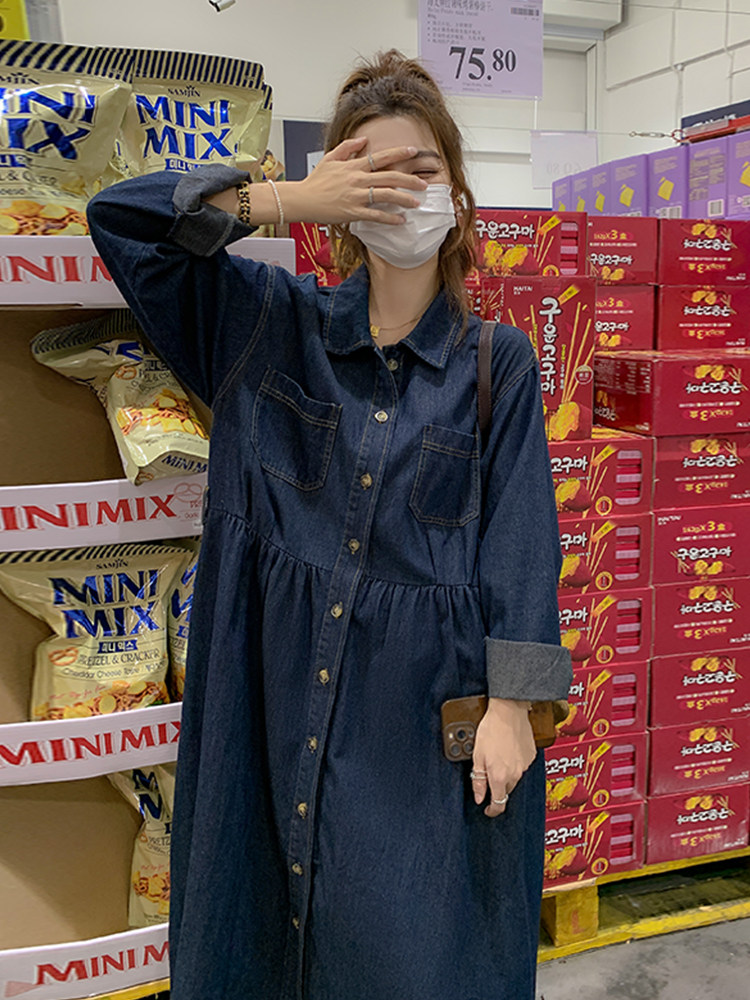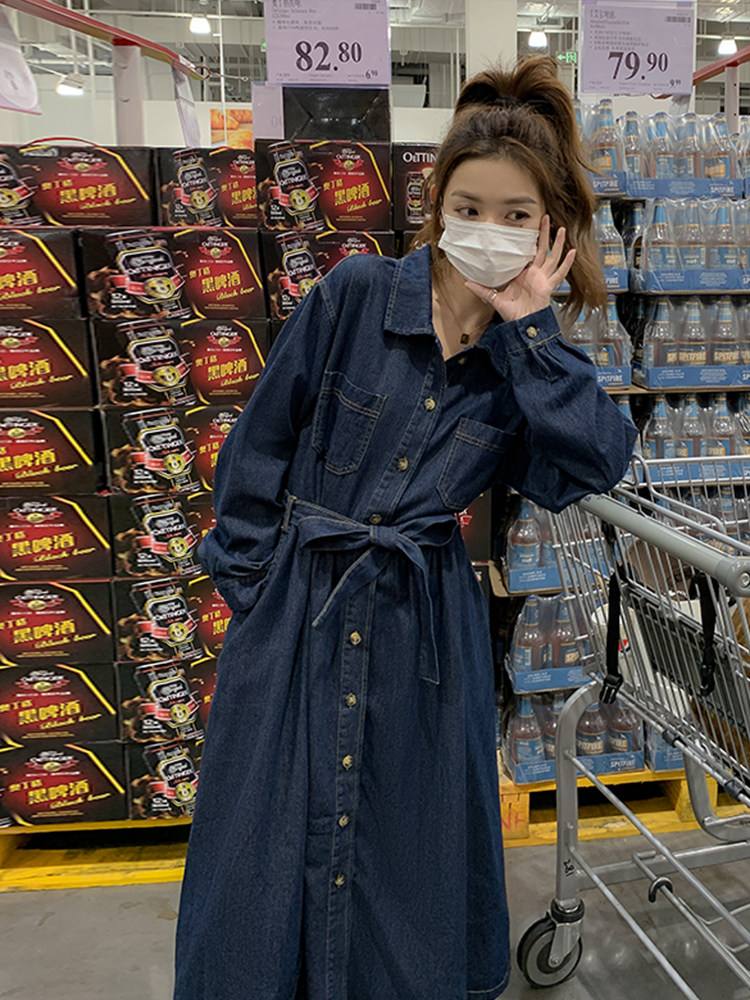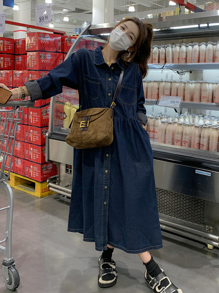 Джинсовый осенний лонгслив, ретро корсет, рубашка, французский стиль, воротник поло