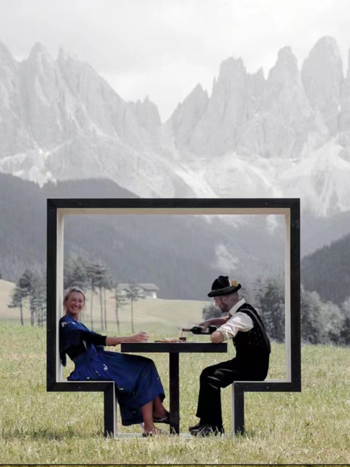 Творческий пакет качания на открытом воздухе, красный пикап снимает живописный парк Мейхен Даос -Холл, посадочный интерактивное устройство, приземление