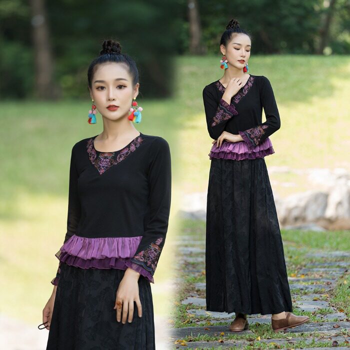 Этнический короткий лонгслив с круглым воротником, этнический стиль, облегающий крой, большой размер