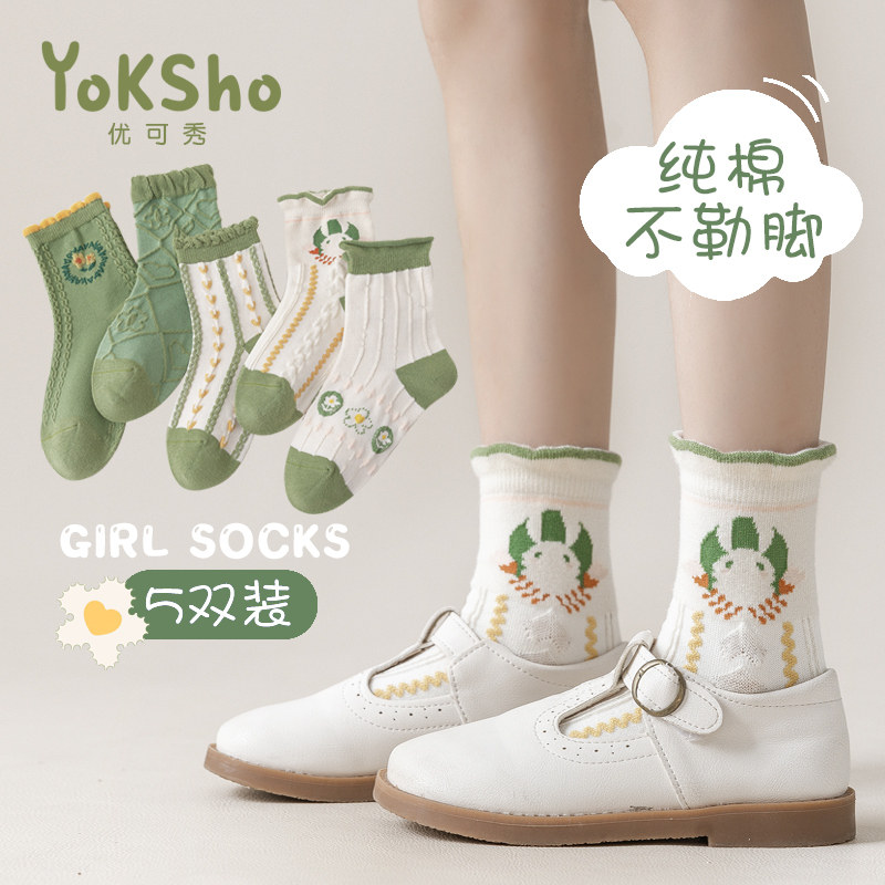Детские демисезонные носки, тонкие хлопковые гольфы для принцессы, средней длины, осенние
