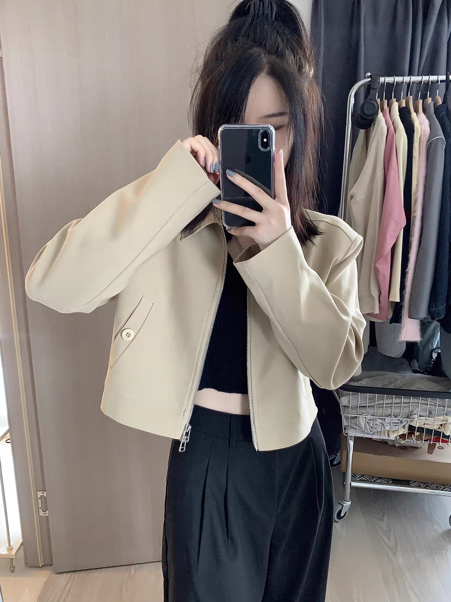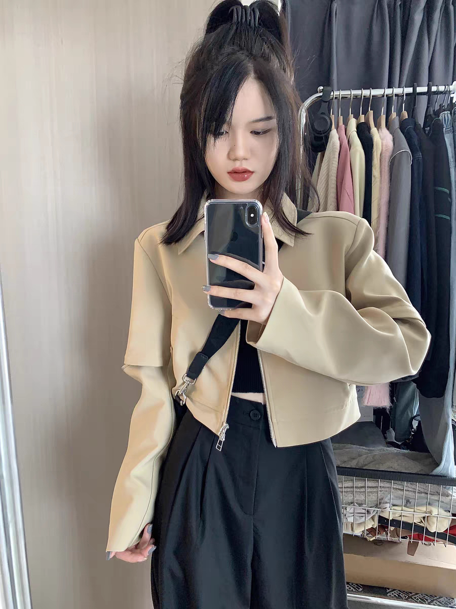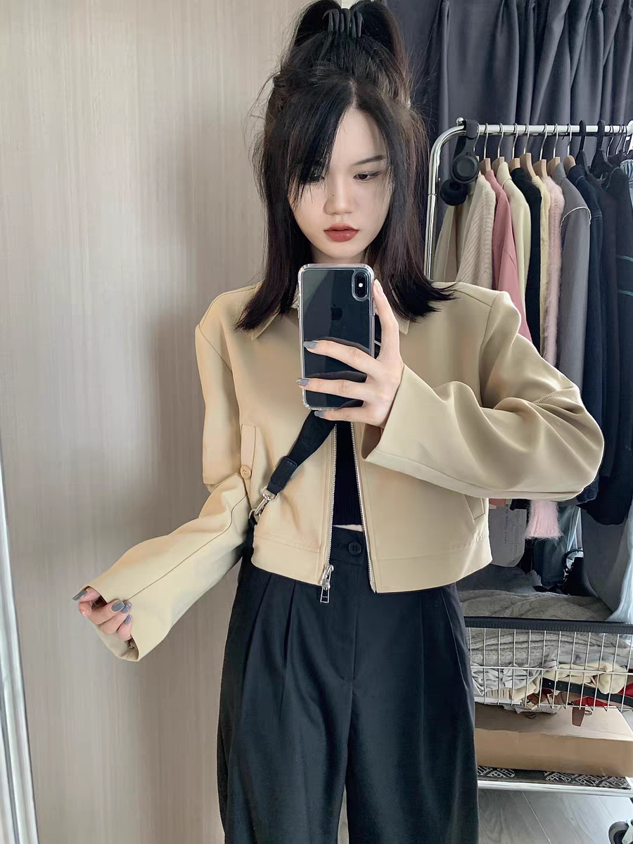 Хаки короткая осенняя куртка, дизайнерский лонгслив для отдыха, пиджак классического кроя, костюм, тренд сезона, подходит для подростков