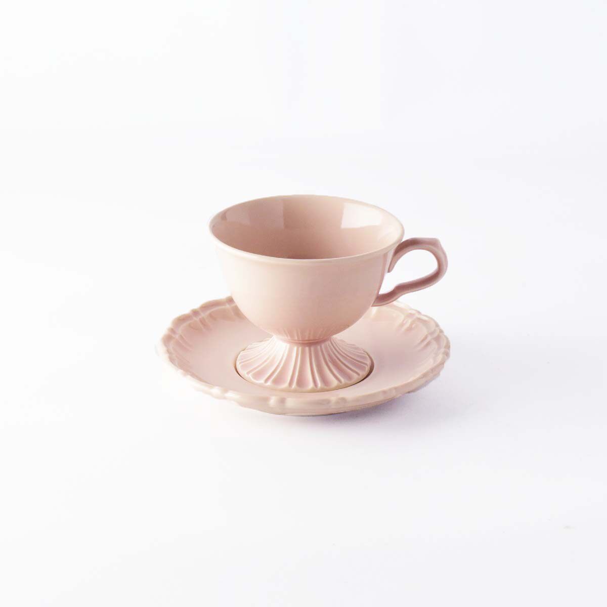 - Кофейная чашка и розовая тарелка