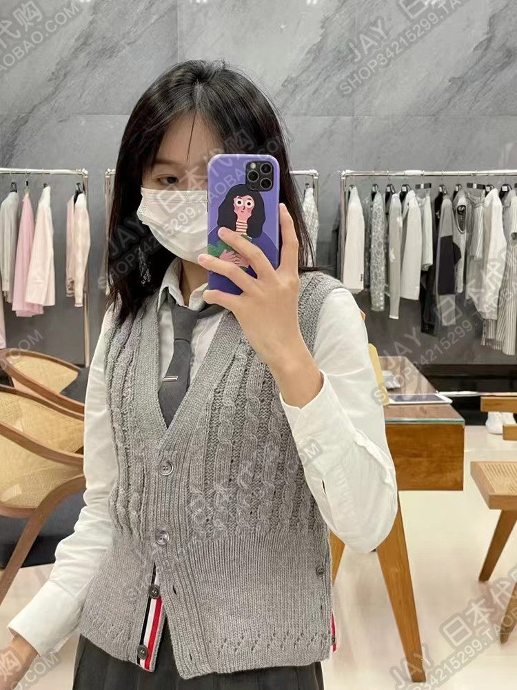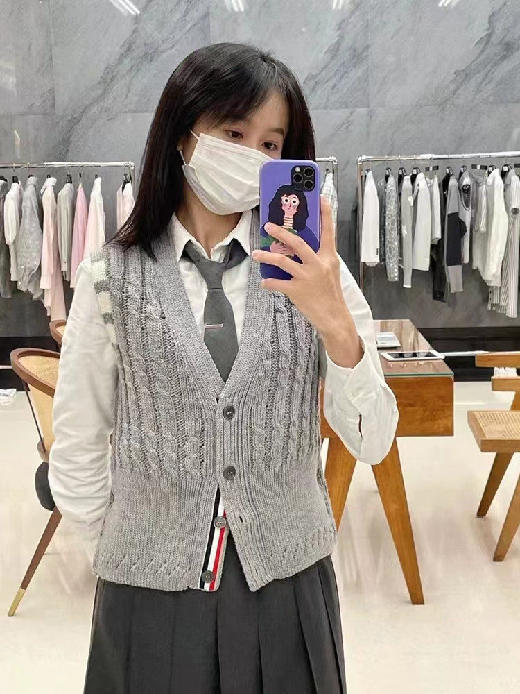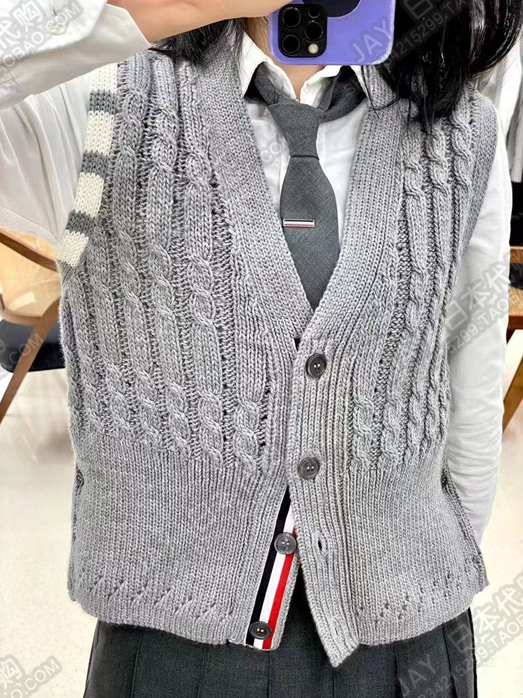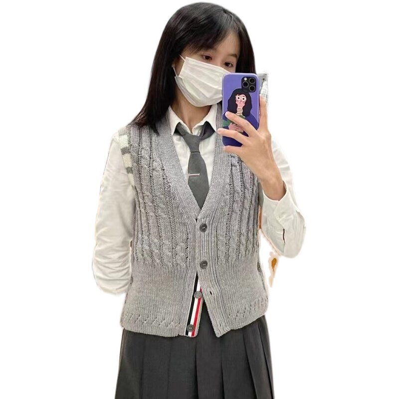 Thom Browne Японский трикотажный жилет без рукавов, кардиган подходит для мужчин и женщин