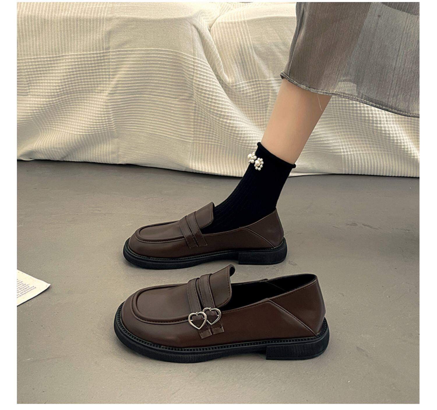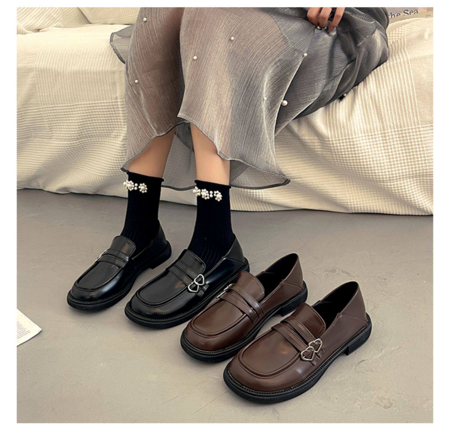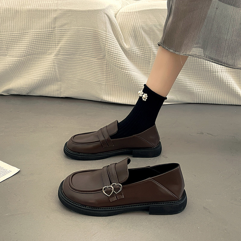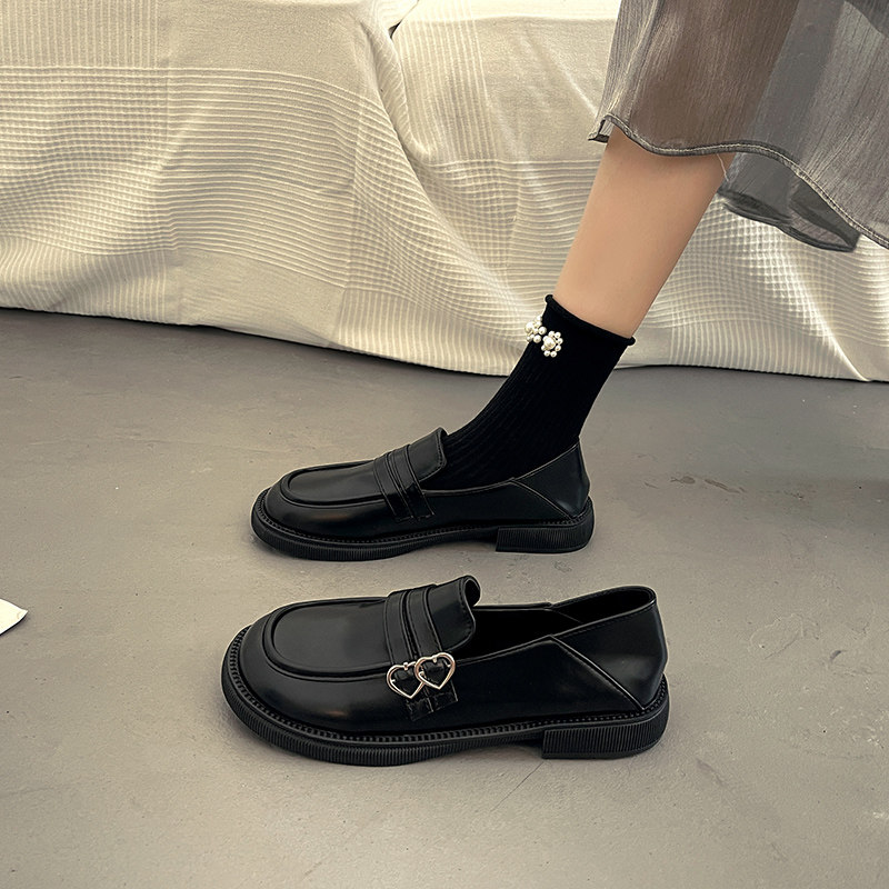 Весенняя обувь в английском стиле для кожаной обуви, черные лоферы, французский стиль, в британском стиле