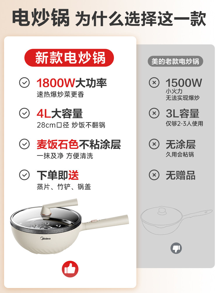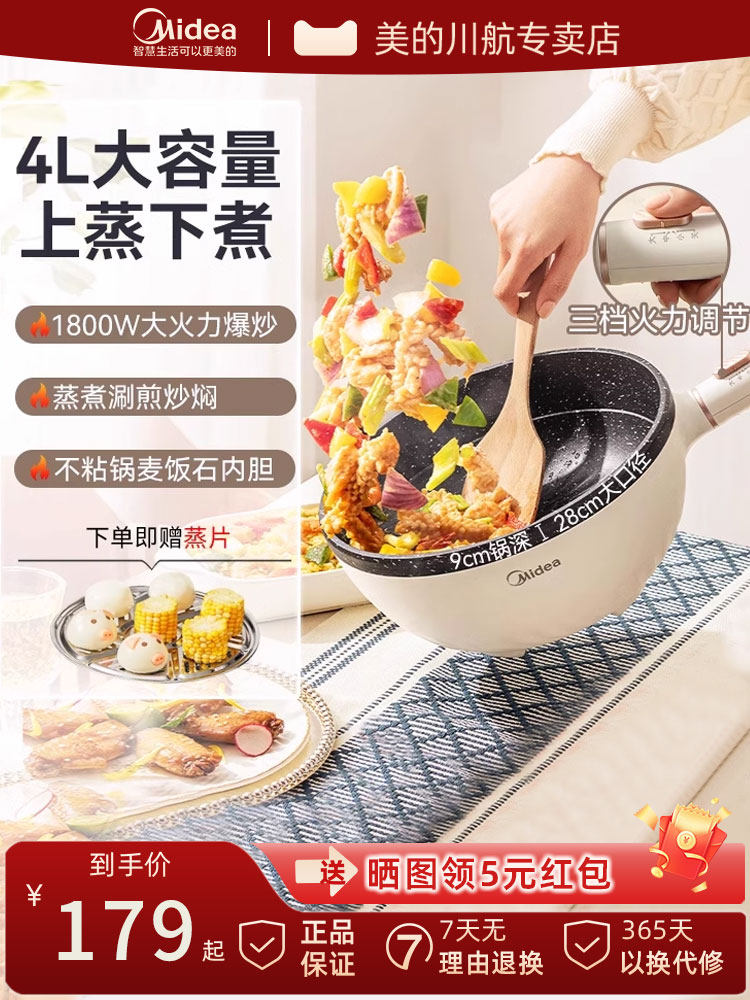 Midea Electric Hot Hot Hot Multifunctional Poetry Dormitory Integrated Electric Wynked Pot -Fried Fried Пытана из жареной приготовление