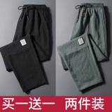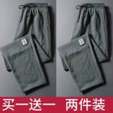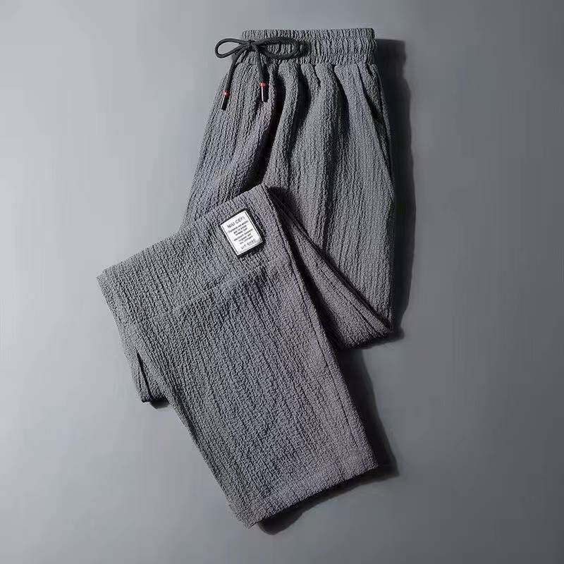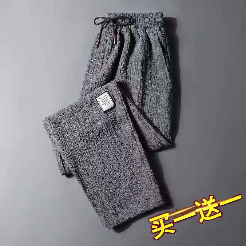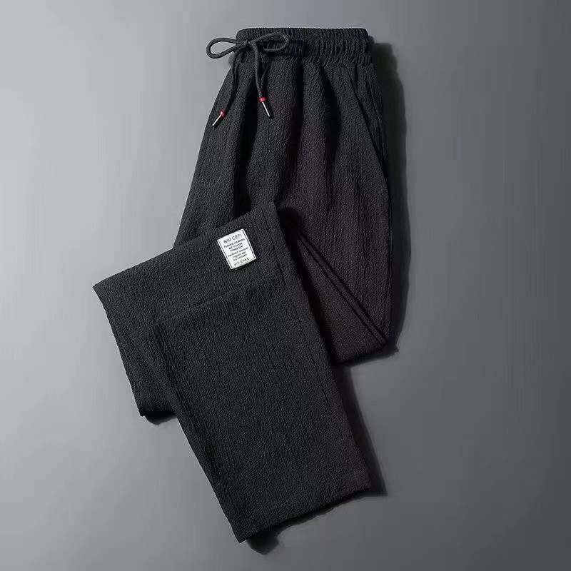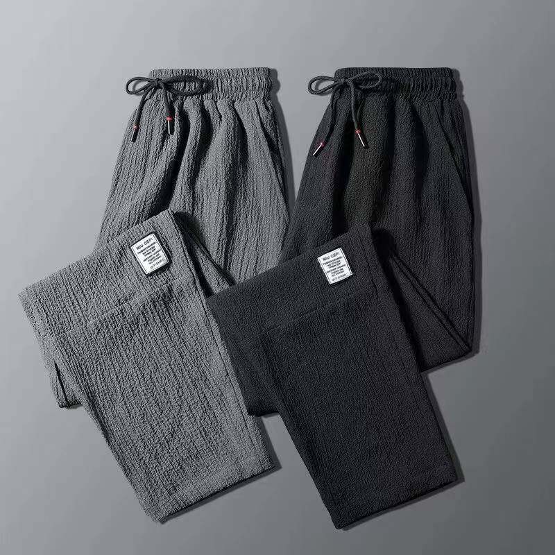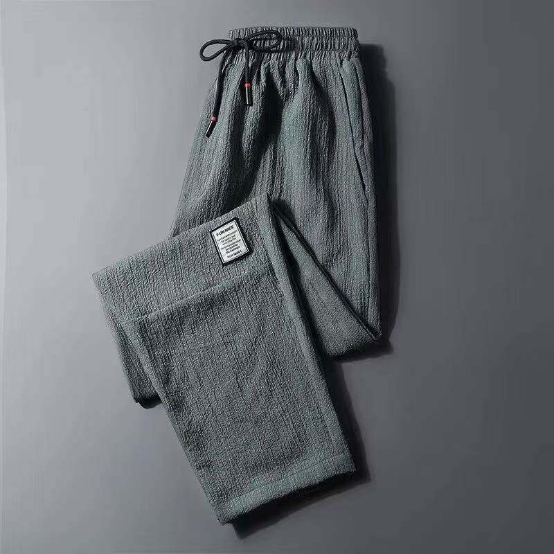 Летние мужские тонкие шелковые быстросохнущие спортивные штаны, свободный прямой крой