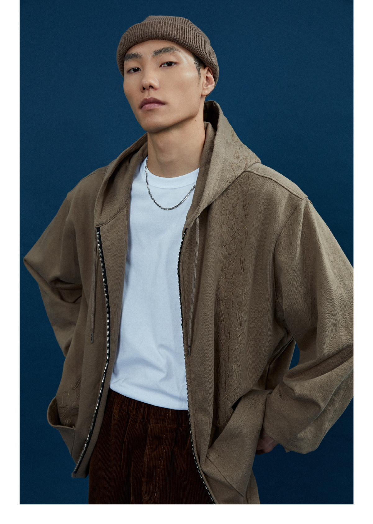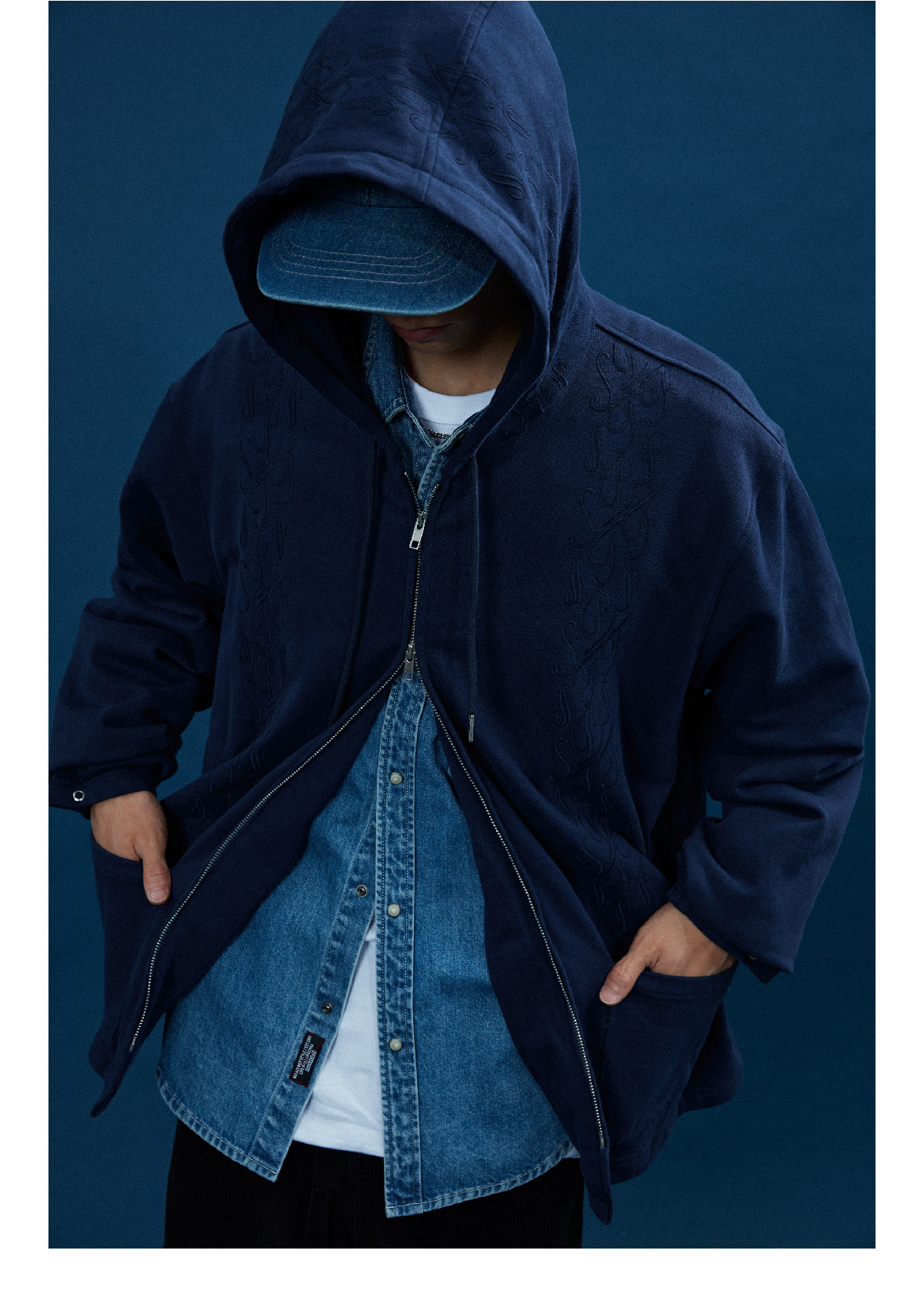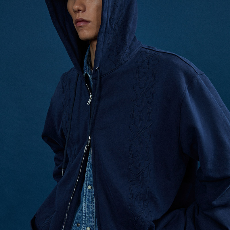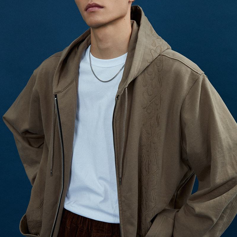 Supertofu (SPTF) AW22 Бренд Tangcao Pattern Вышитый с двойной молнией Тонкий вертикальный смысл с капюшоном с капюшоном