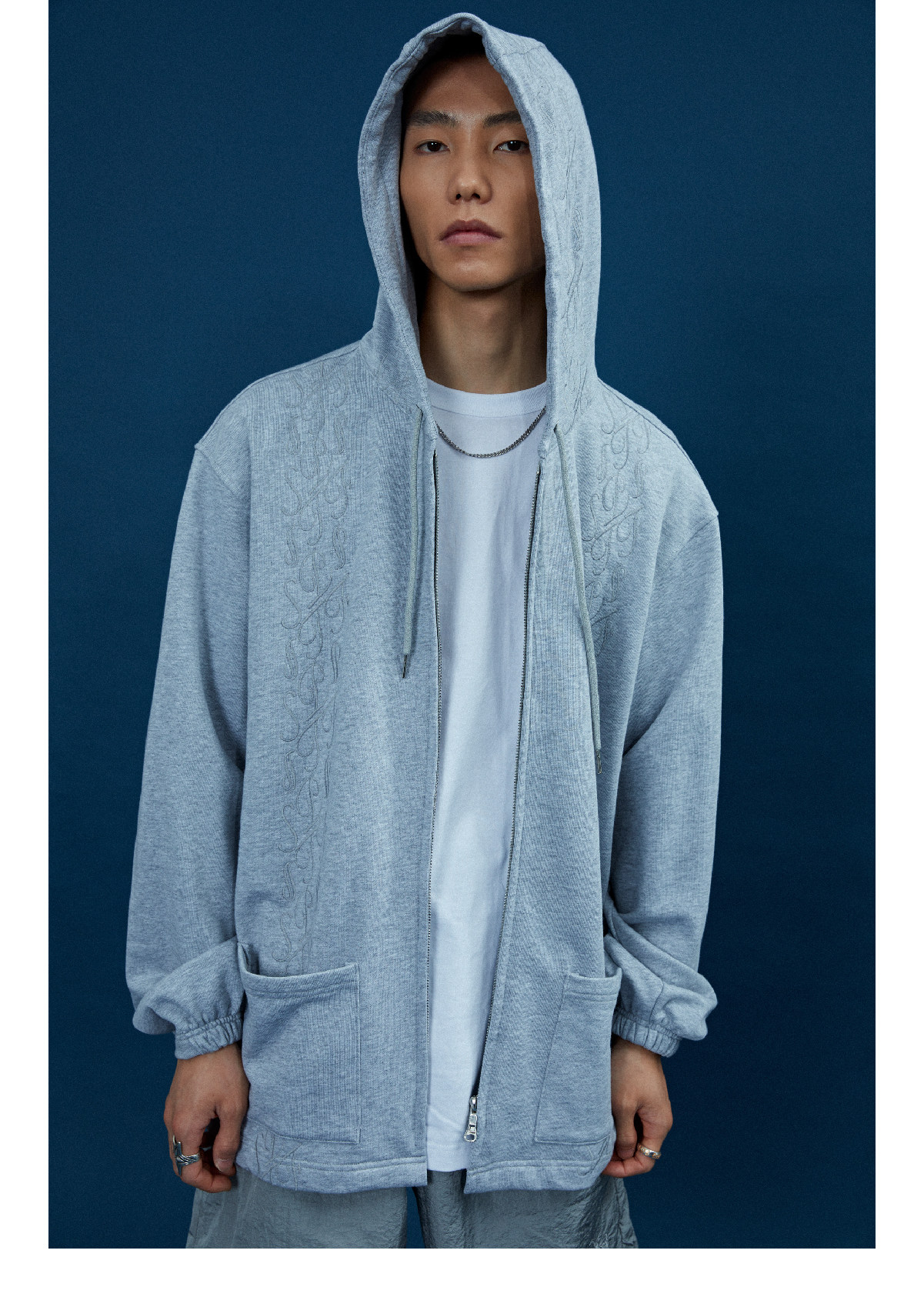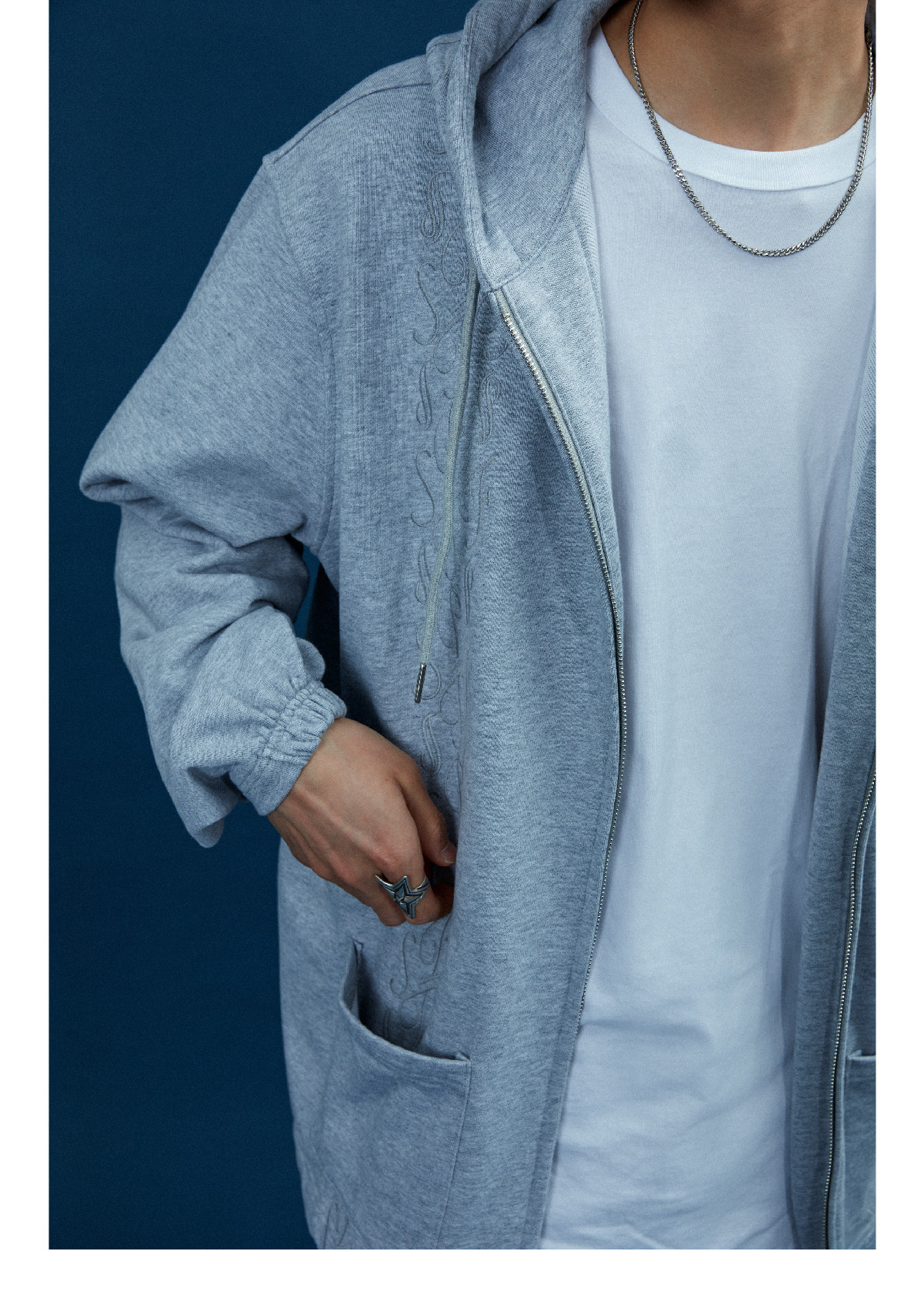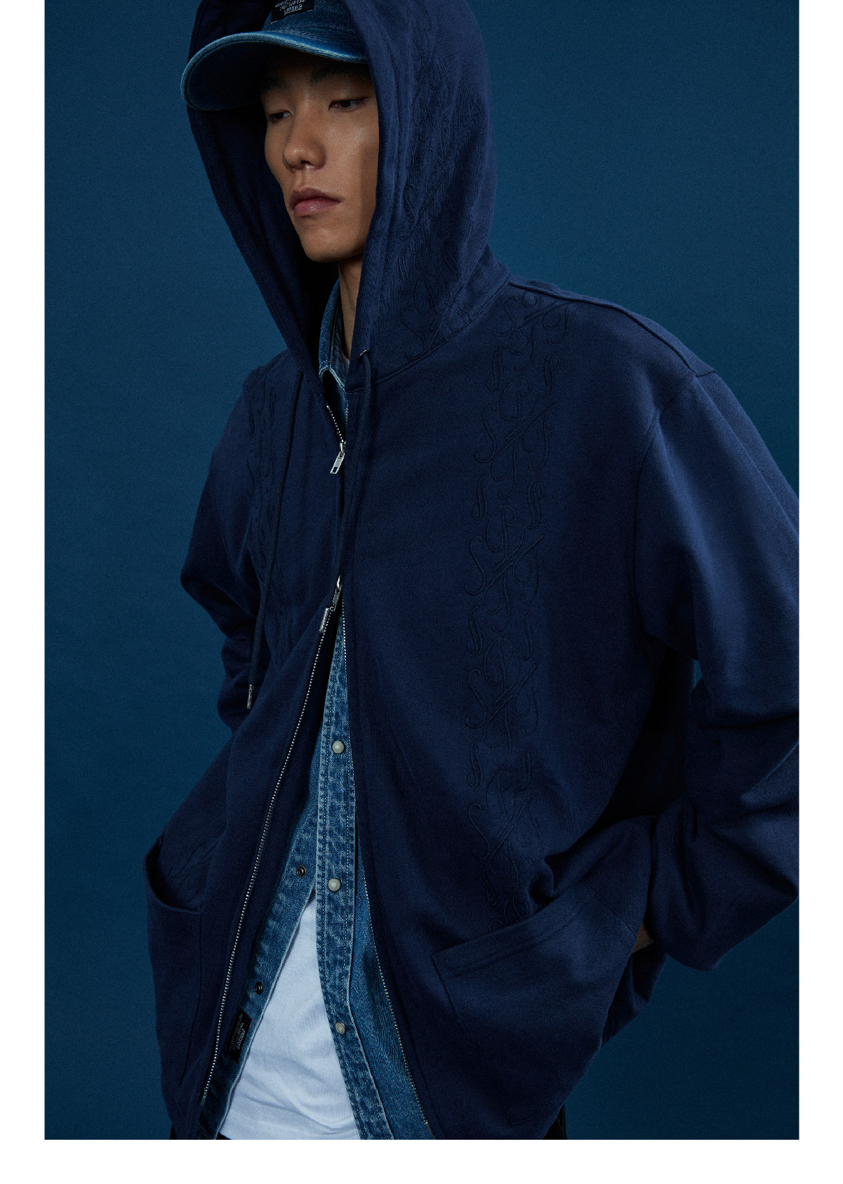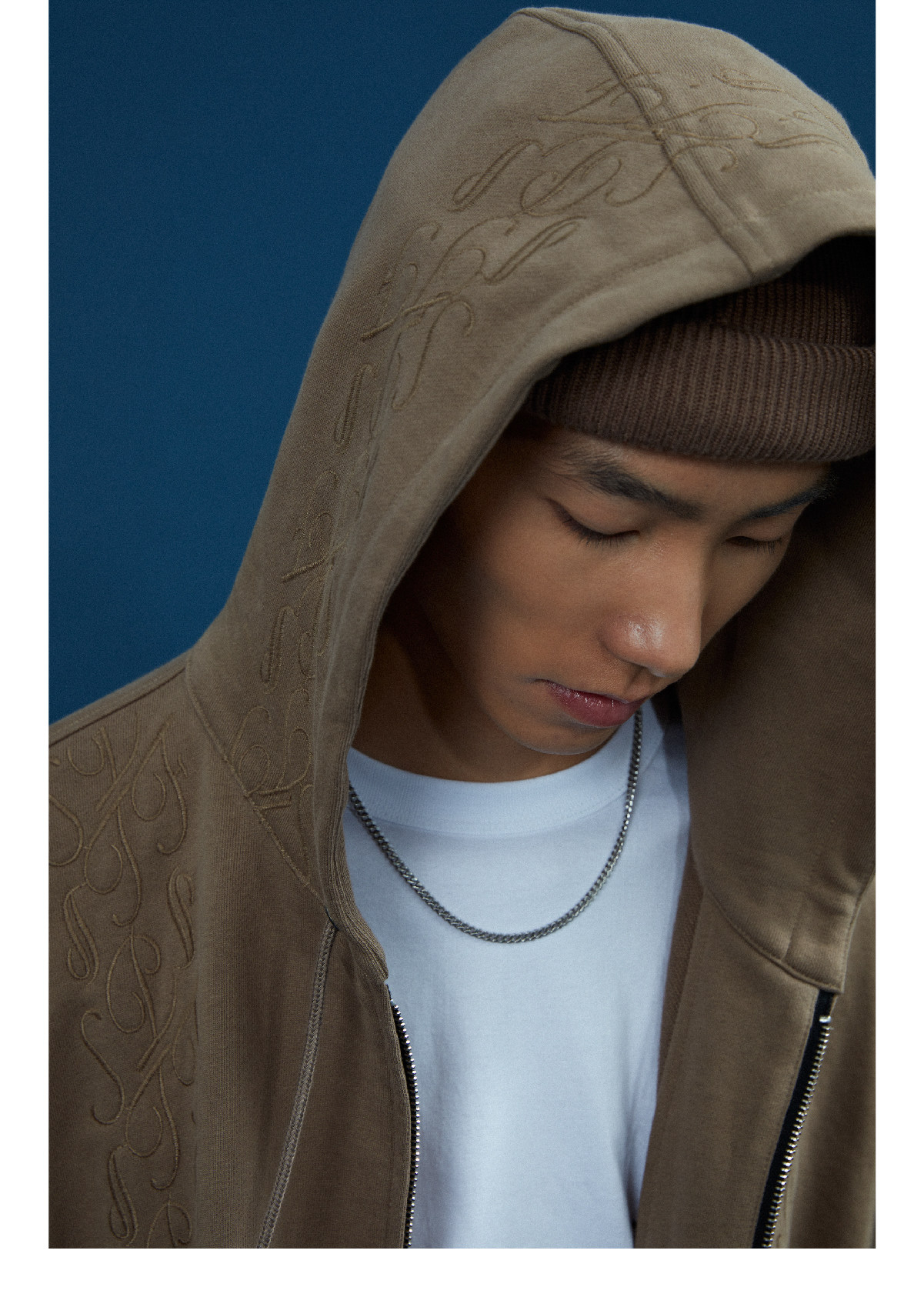 Supertofu (SPTF) AW22 Бренд Tangcao Pattern Вышитый с двойной молнией Тонкий вертикальный смысл с капюшоном с капюшоном