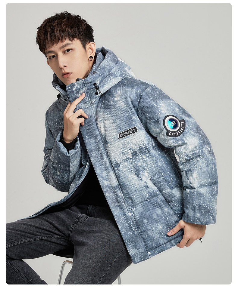 Демисезонное модное звездное небо с капюшоном подходит для мужчин и женщин, пуховик