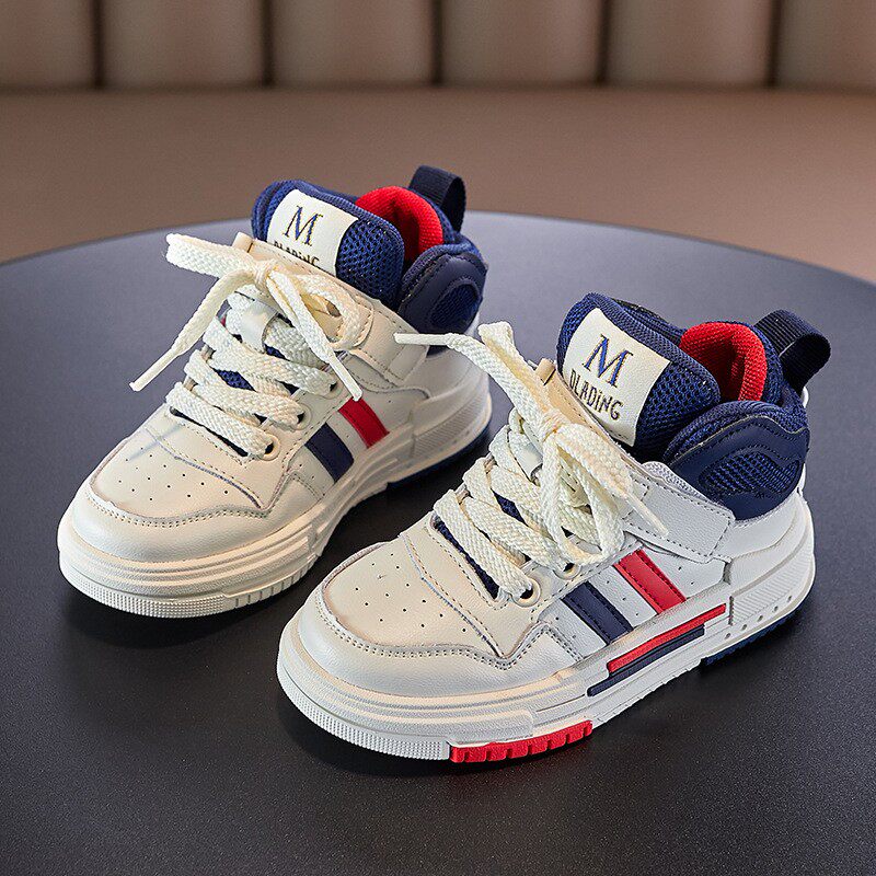 Детские высокие кроссовки, спортивная обувь, нескользящая дышащая баскетбольная форма, повседневная обувь на липучке, из натуральной кожи