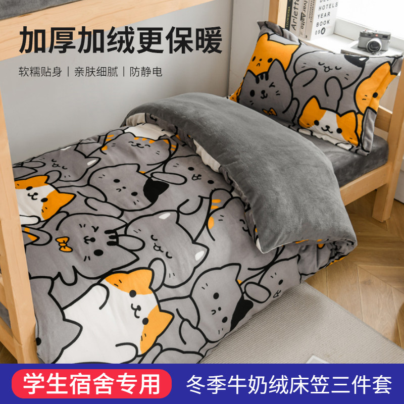 Коралловый комплект для школьников и студентов, простыня, флисовый пододеяльник, 3 предмета, 90x, постельные принадлежности