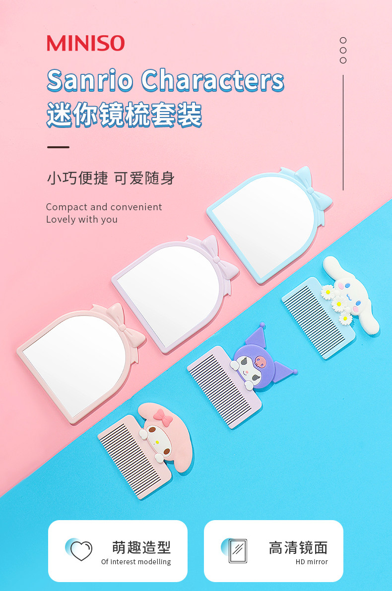 miniso Sanrio, маленький портативный милый комплект, зеркало, подвеска