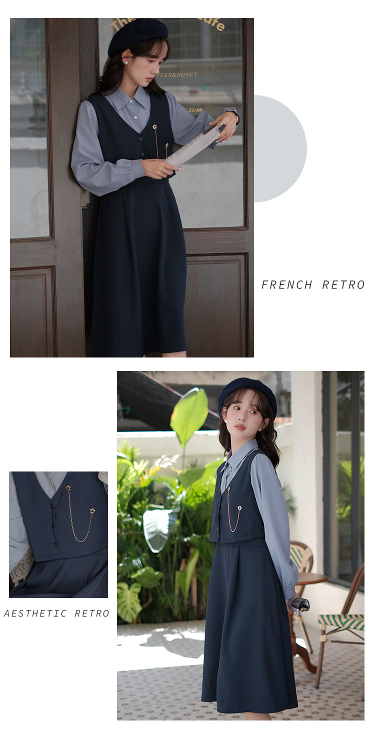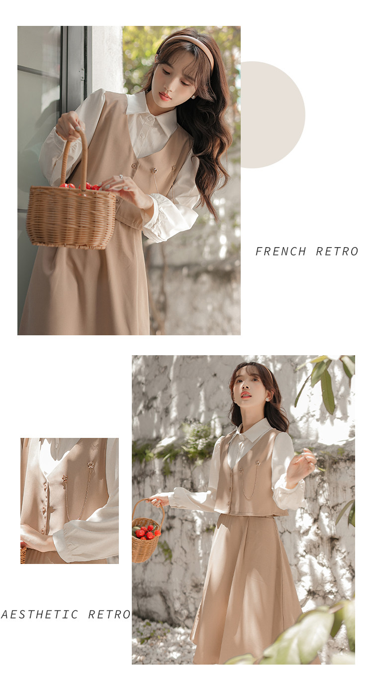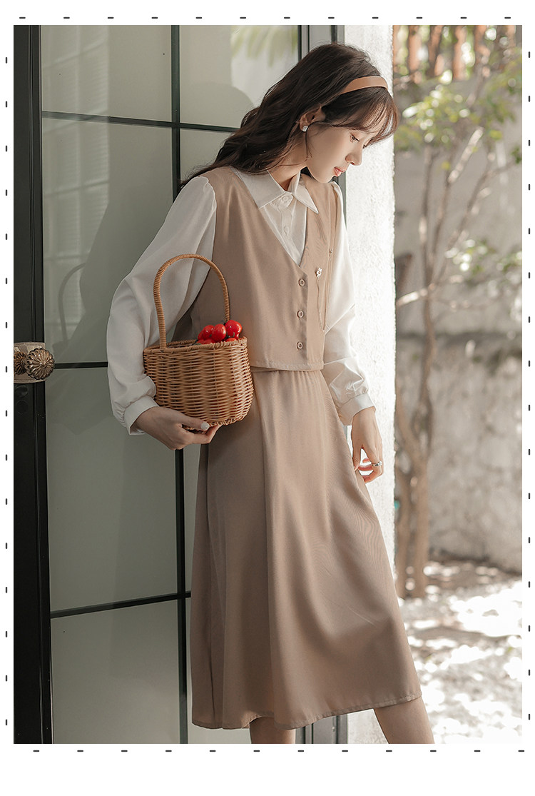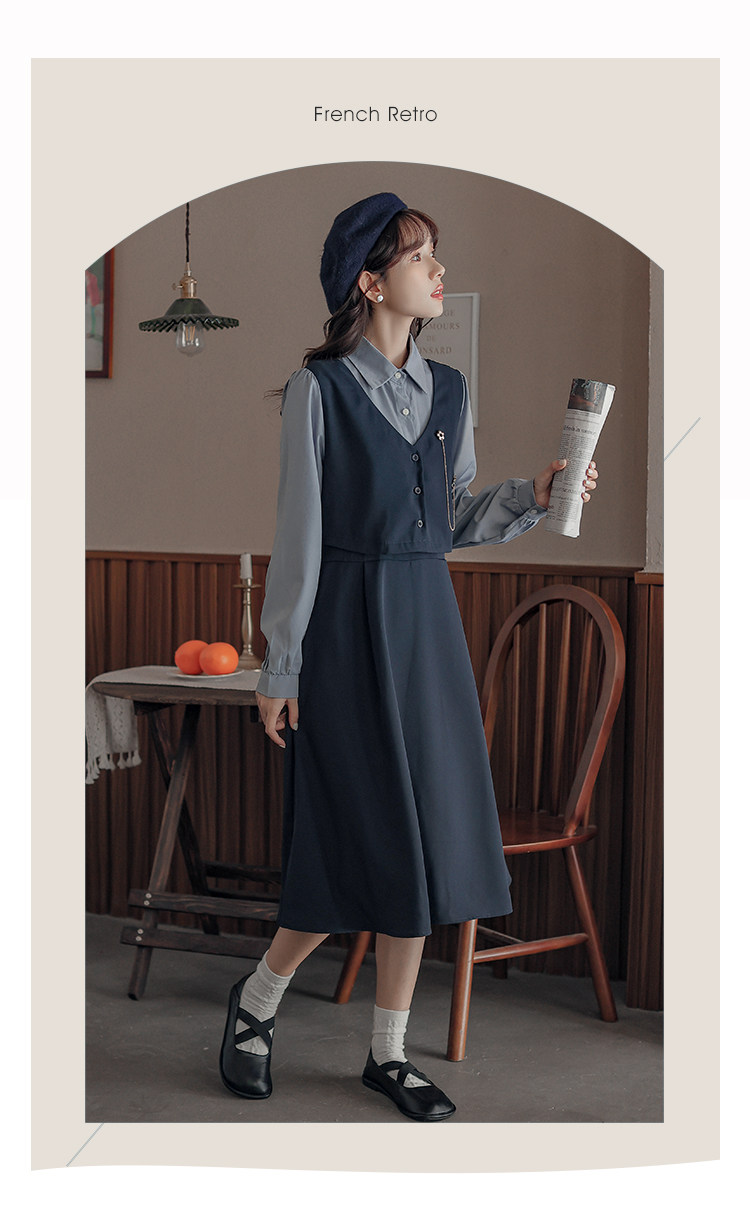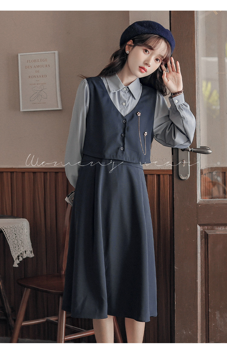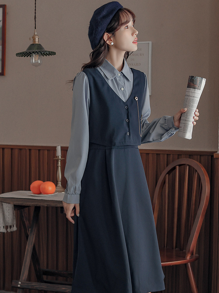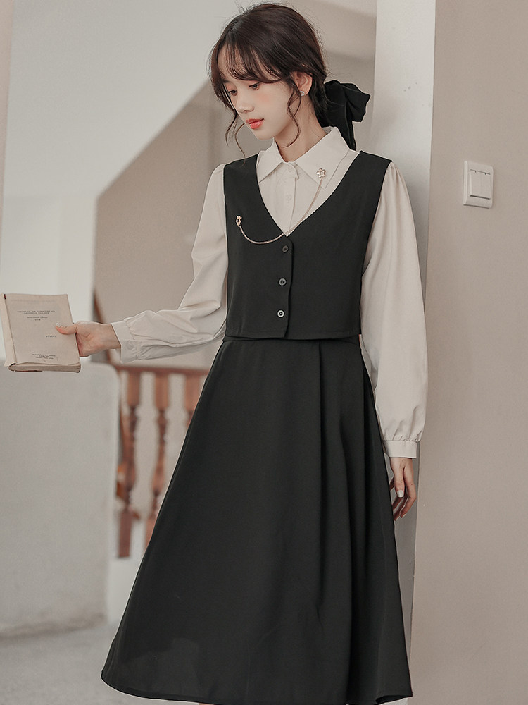 Осеннее платье, комплект, длинная юбка, французский стиль, средней длины