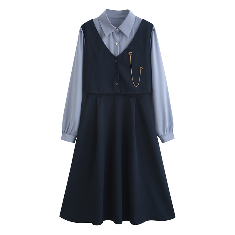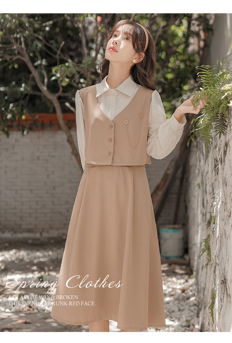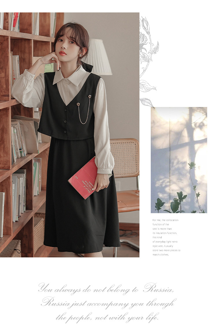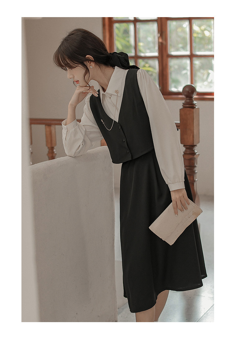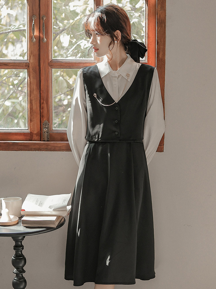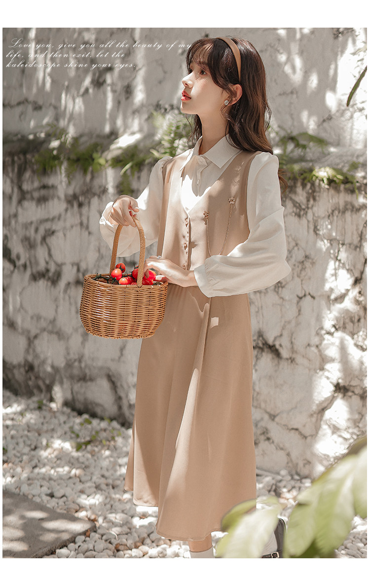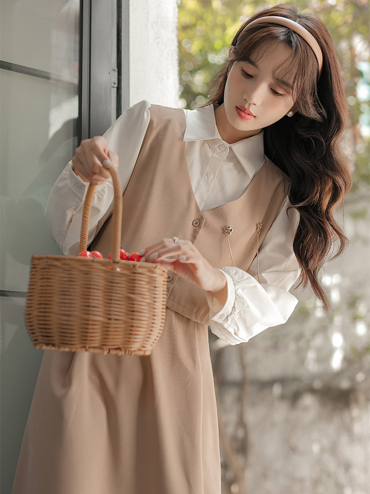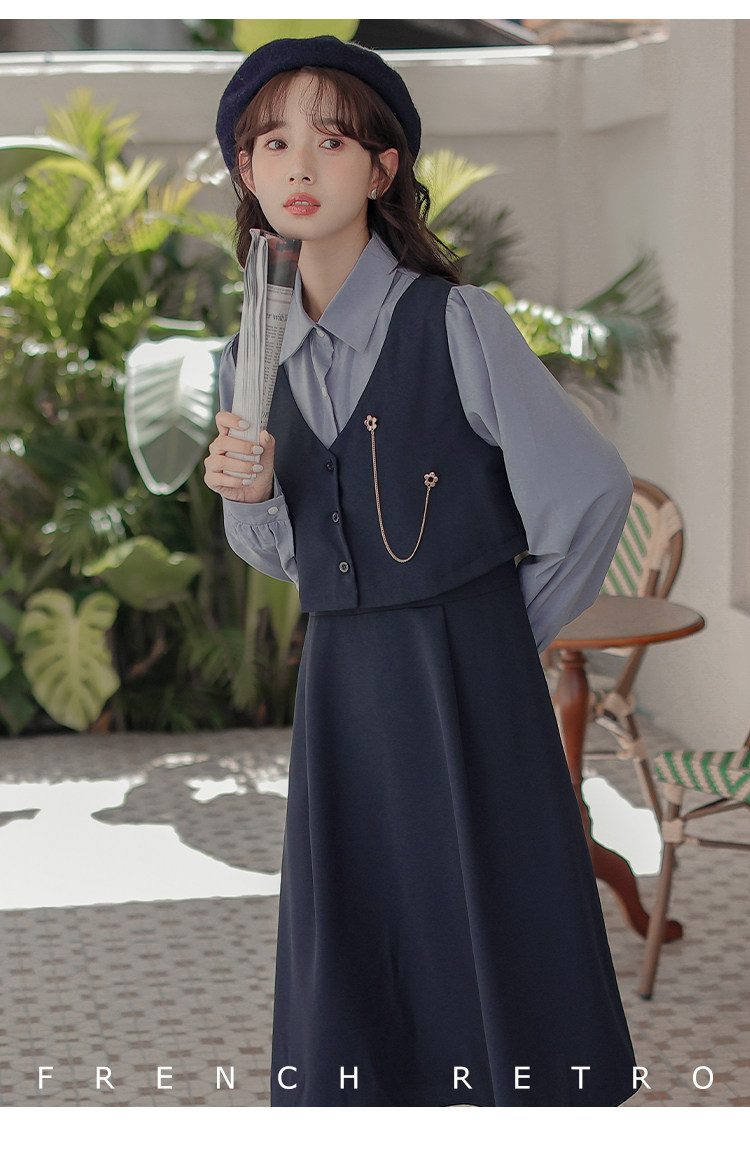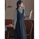 Осеннее платье, комплект, длинная юбка, французский стиль, средней длины