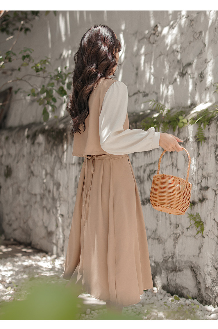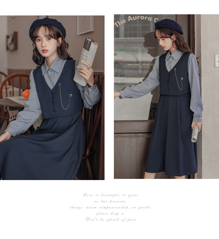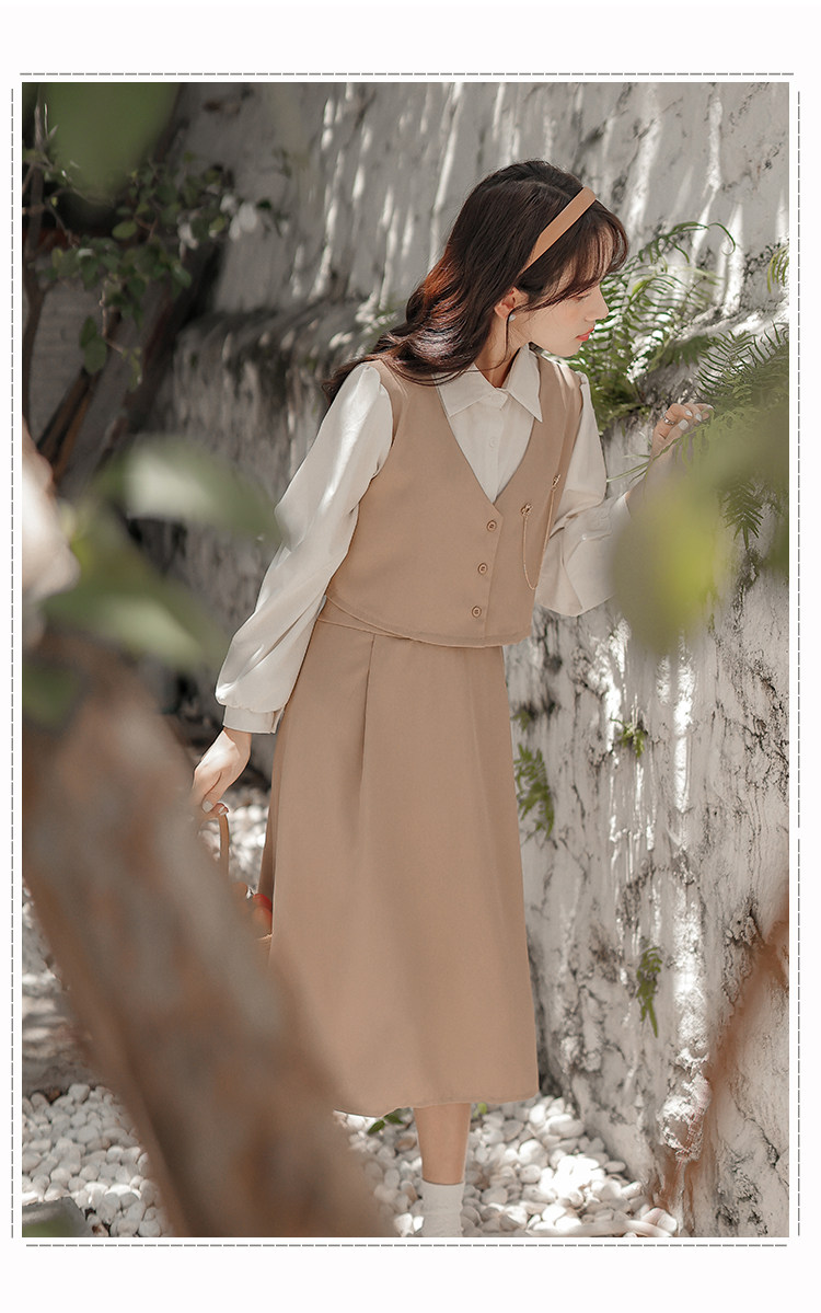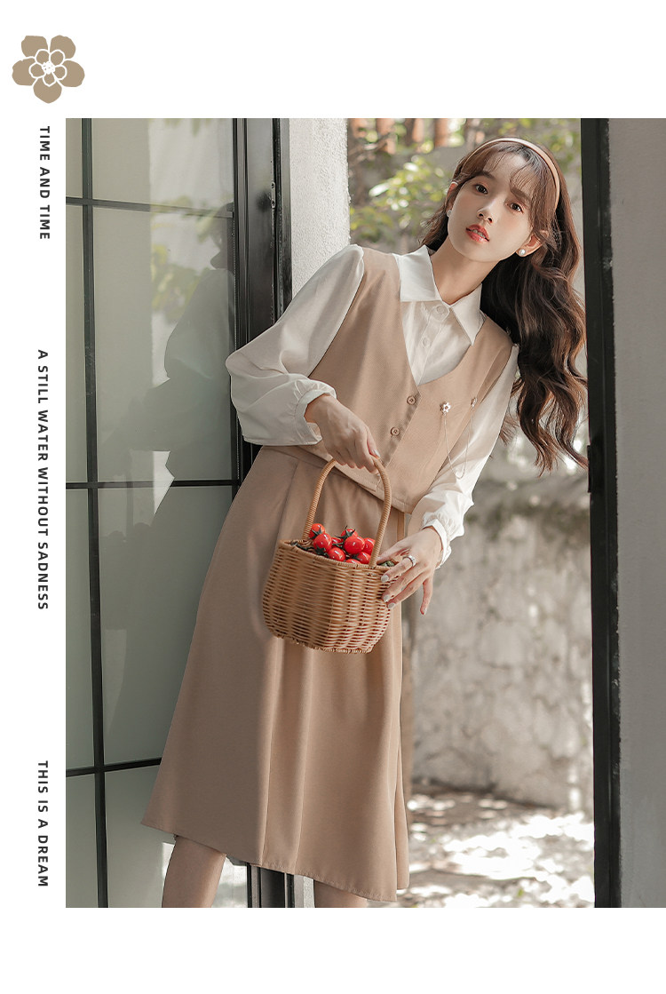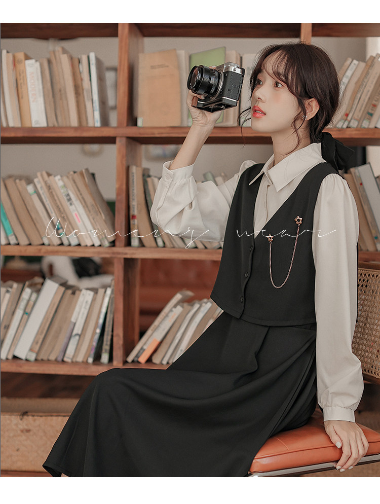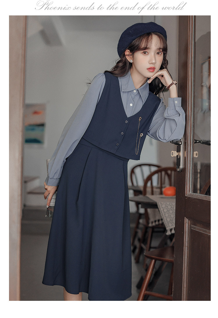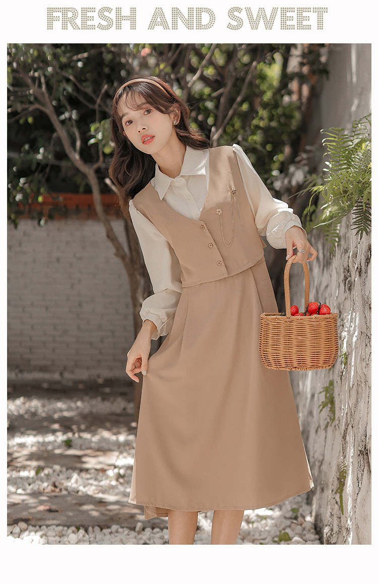 Осеннее платье, комплект, длинная юбка, французский стиль, средней длины