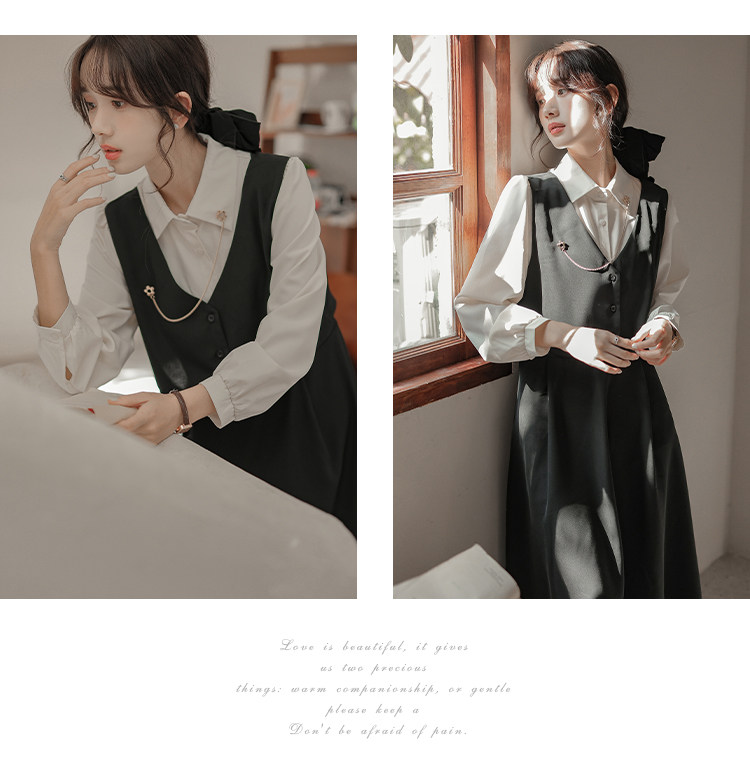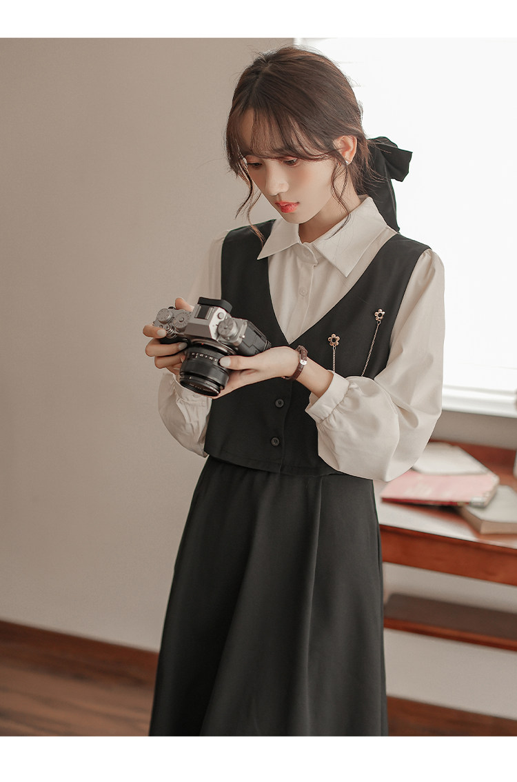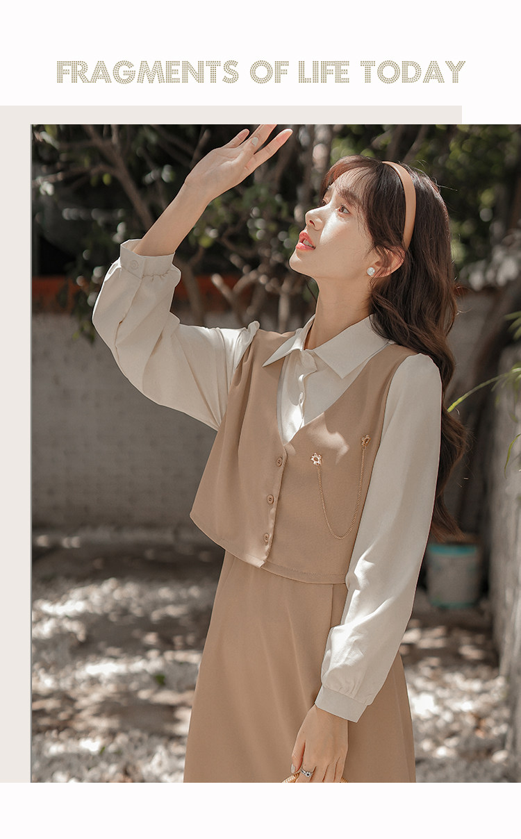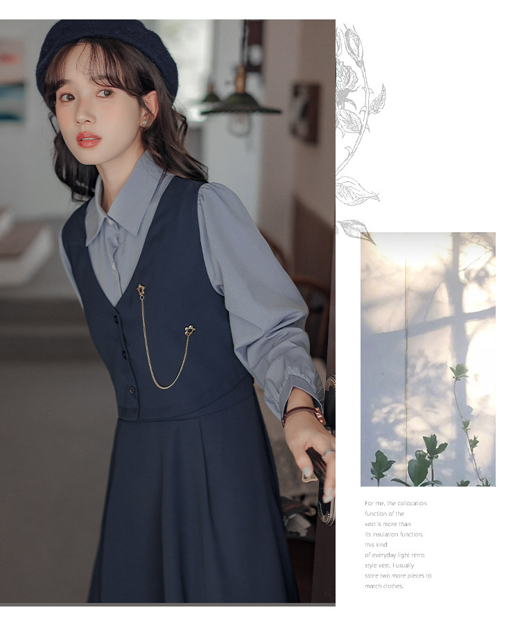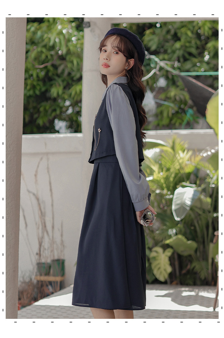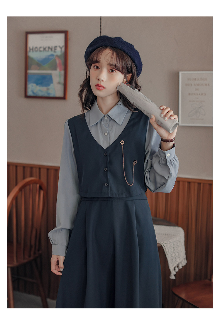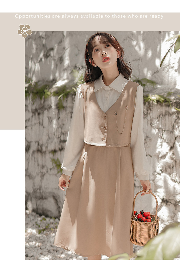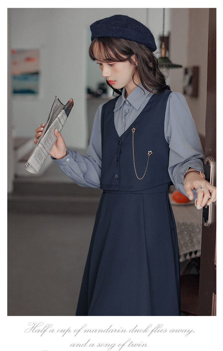 Осеннее платье, комплект, длинная юбка, французский стиль, средней длины